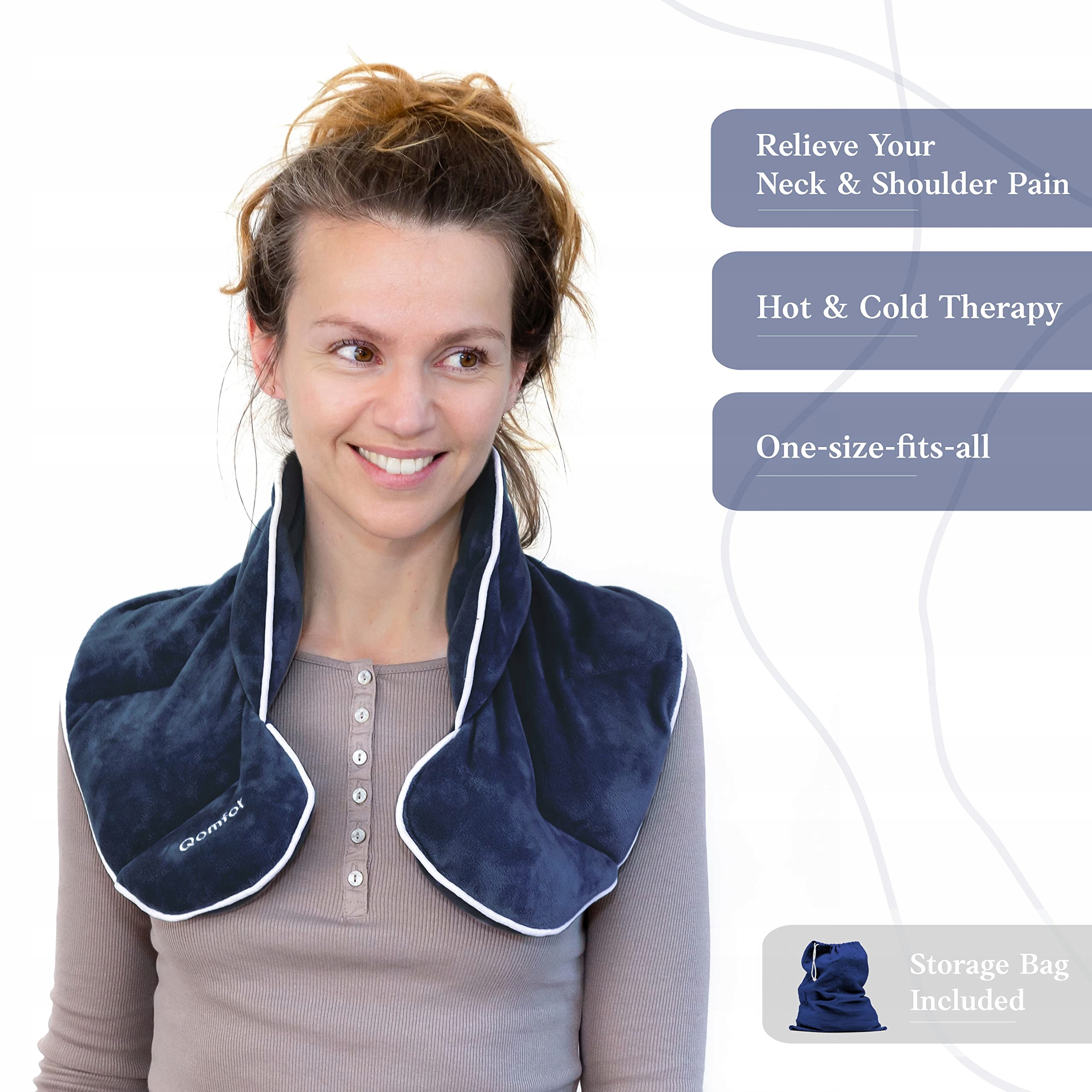 Qomfor Poduszka z ziarnami na szyję i ramiona - Poduszka termiczna do mikrofalówki - wypełniona pszenicą i lawendą - Poduszka z ziarnami do mikrofalówki na ból szyi, ramion, pleców - granatowa