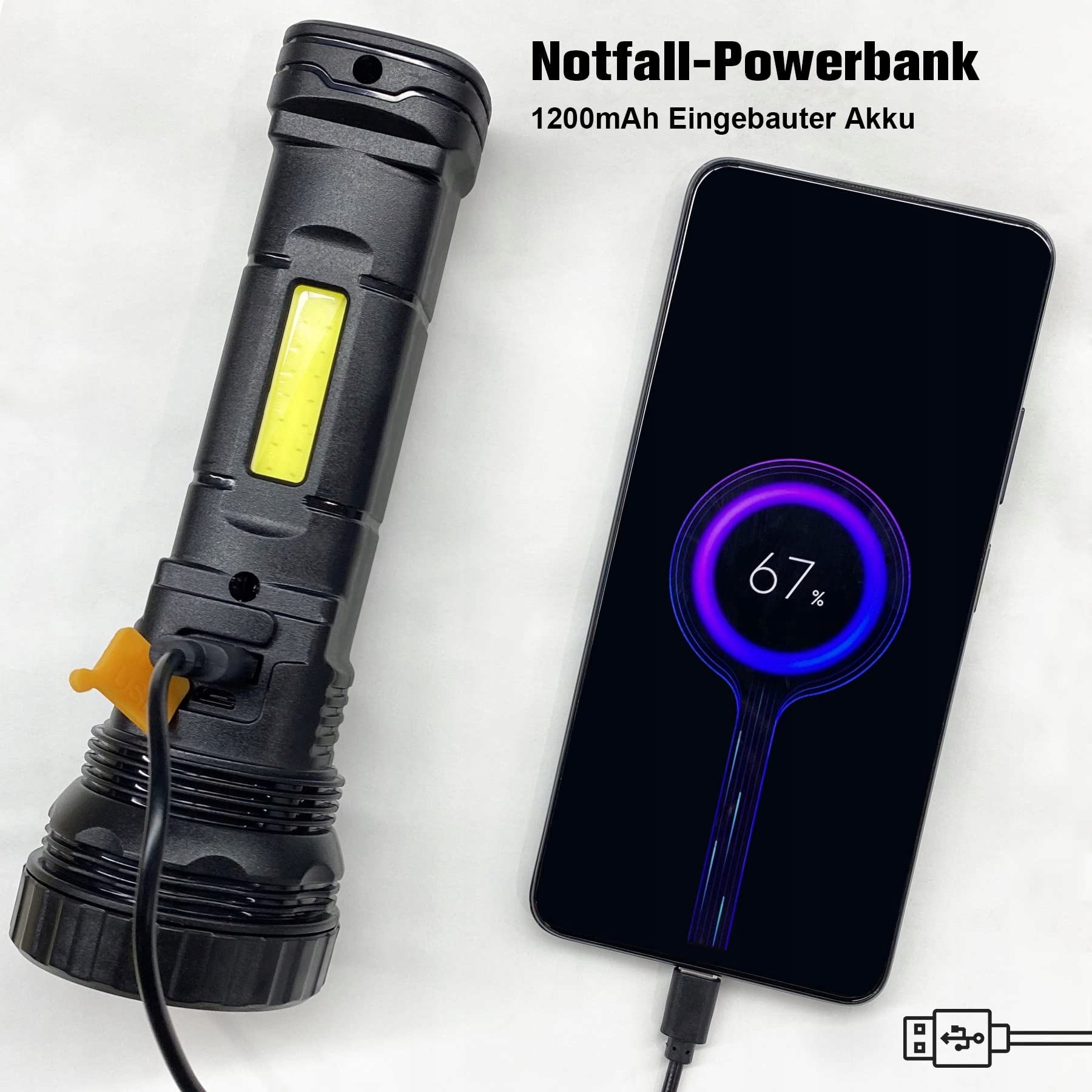 🔦Latarka ładowalna, idealna na sytuacje awaryjne: Latarka ma wbudowany akumulator 1200mAh i wspiera ładowanie UBS. Zalecamy używanie latarki jako powerbanku tylko w sytuacjach awaryjnych. Poziom wodoodporności latarki to IPX4, co oznacza, że latarka nie boi się warunków pogodowych, takich jak deszcz na zewnątrz.
