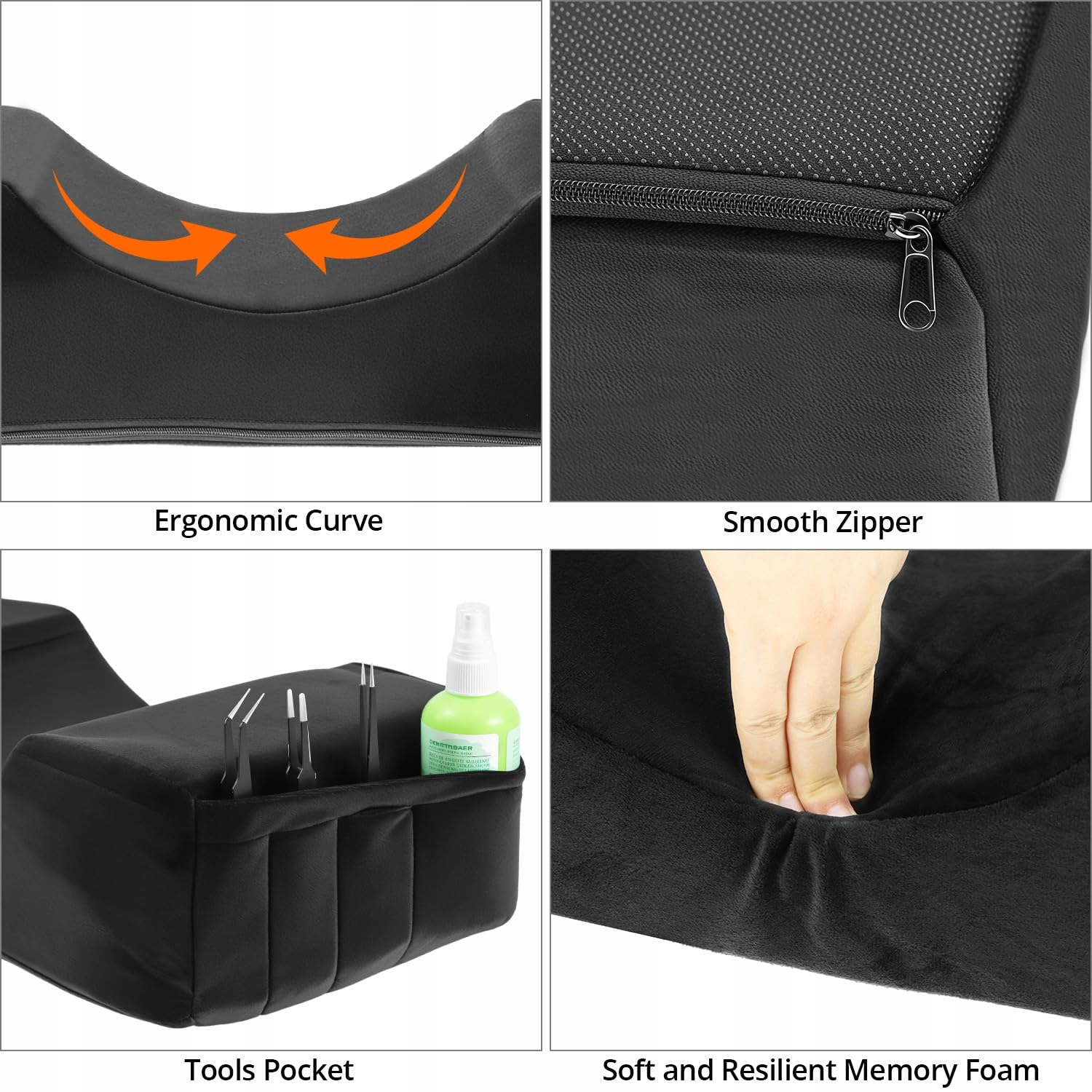 QWORK Poduszka Do Rzęs Ukształtowana Ergonomiczna Pianka Memory Czarna