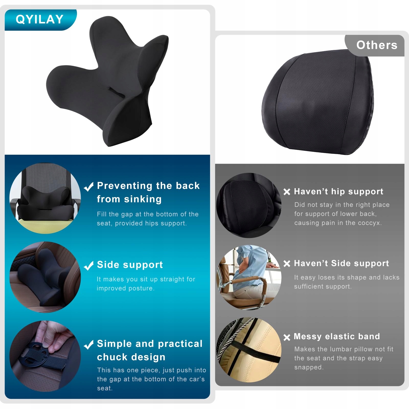QYILAY Poduszka Lędźwiowa Ergonomiczna Samochodowa Z Pianki Memory 45x32cm
