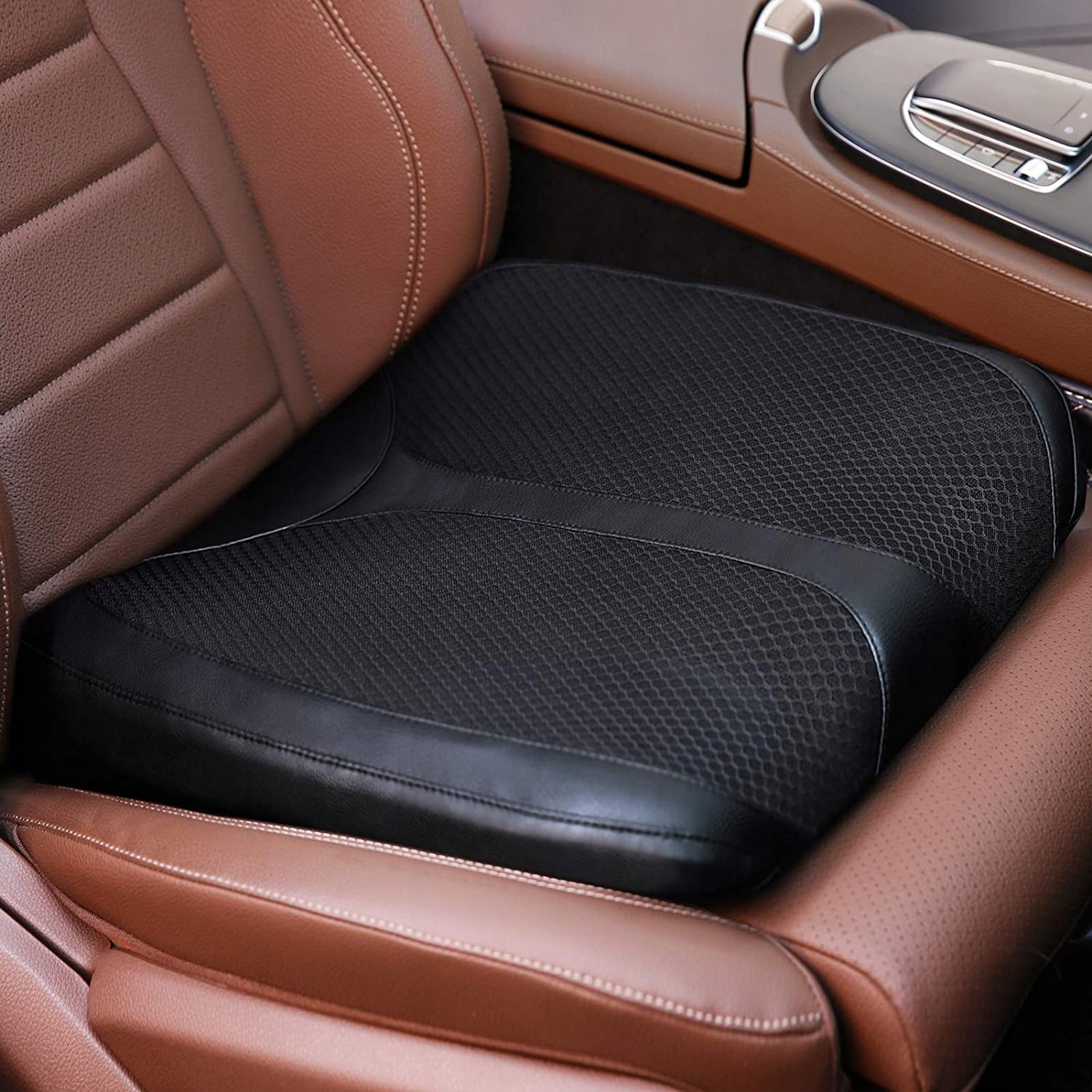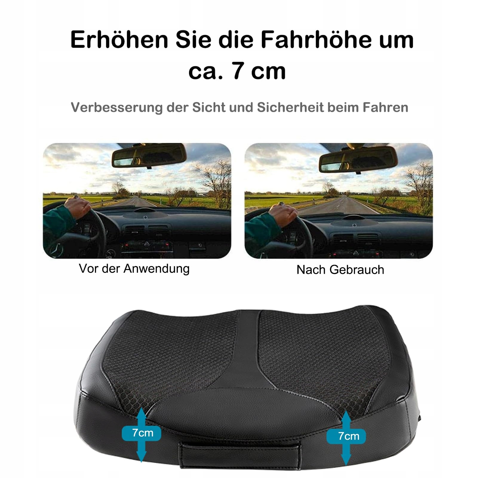 Zapewnia dodatkową wysokość: Jeśli potrzebujesz dodatkowej wysokości, możesz ją lepiej widzieć przy kierownicy lub masce silnika. Jest idealna, łatwo ją włożyć lub wyjąć. Poprawia komfort jazdy o 100%, ponieważ najlepsza pozycja zagłówka podtrzymuje twoją głowę, a kształt siedziska jest na odpowiedniej wysokości, co poprawia twoje bezpieczeństwo podczas jazdy. Poduszka siedziskowa wspiera twój kręgosłup i pomaga złagodzić napięcia oraz bóle szyi podczas długiej jazdy samochodem.