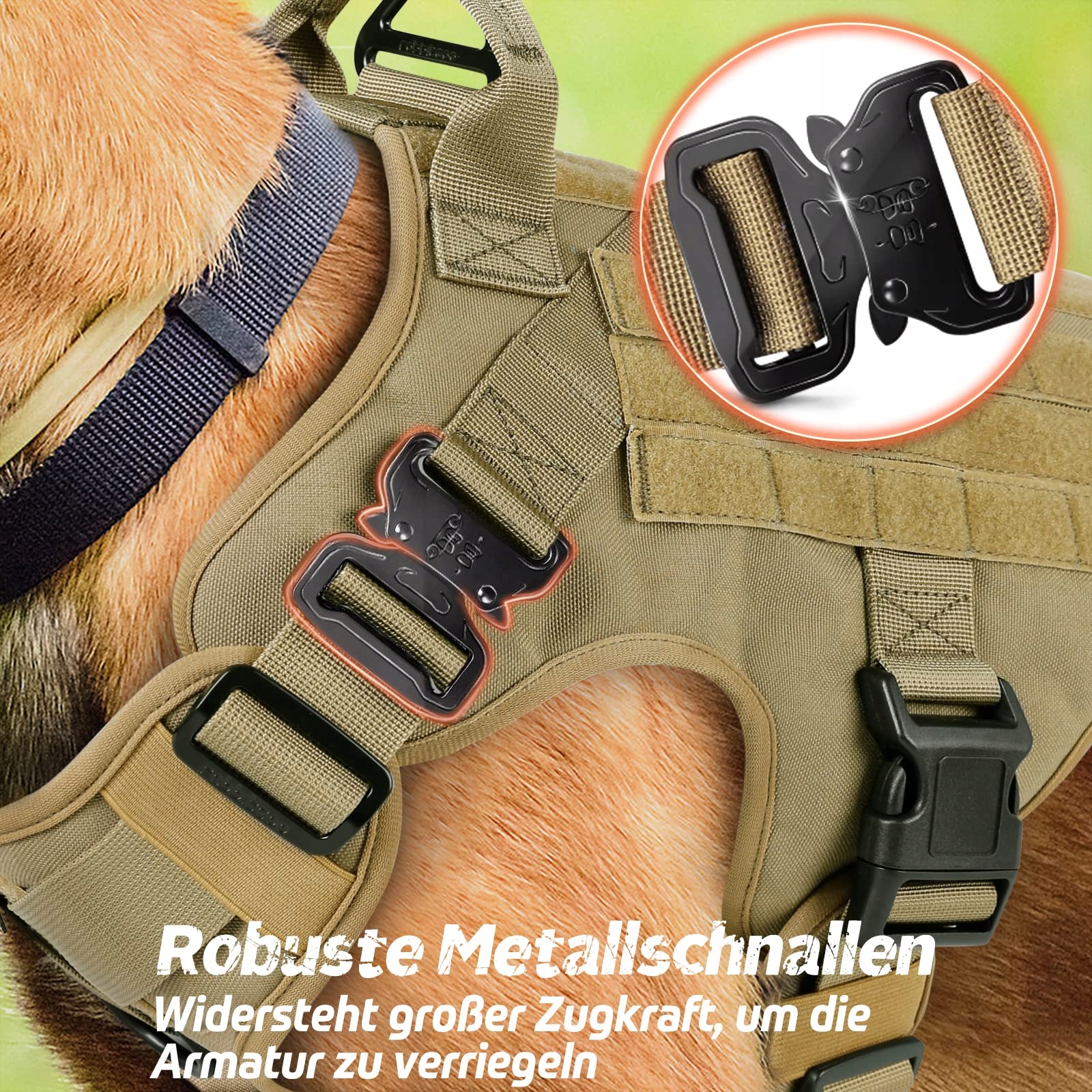 rabbitgoo Szelki dla psa bez ciągnięcia, średnie psy, taktyczne szelki z uchwytem MOLLE, metalowe klamry, oddychające szelki wojskowe, regulowana kamizelka dla psa, XL brązowe