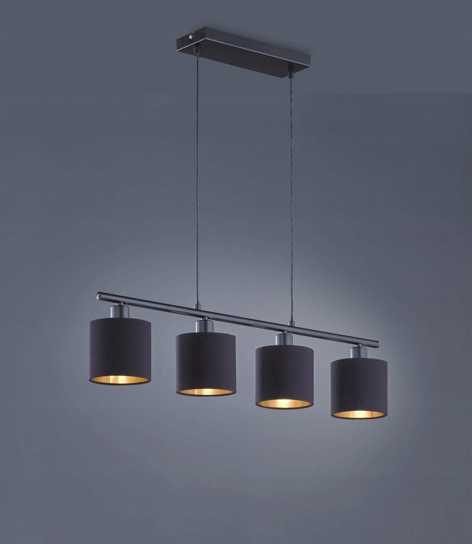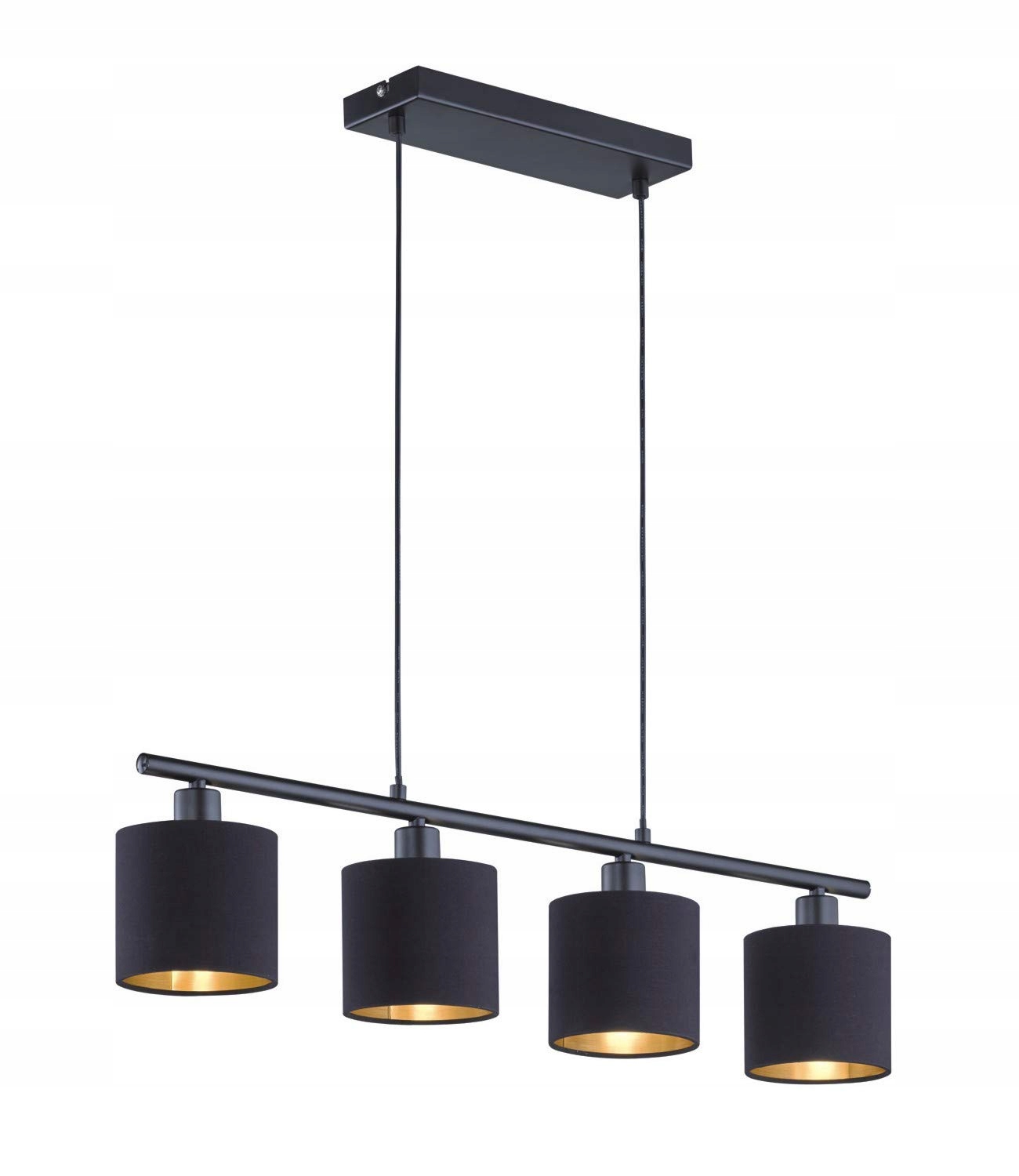 Lampa wisząca Tommy 4-płomienna w metalowym czarnym macie z abażurami w kolorze czarnym/złotym