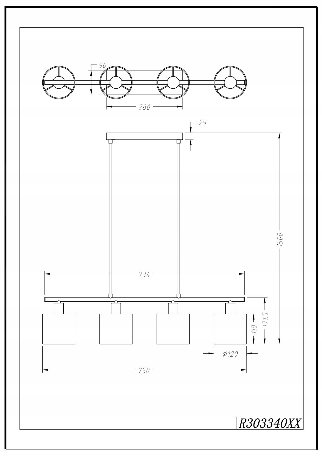 Lampa bez źródła światła. Odpowiednie źródło światła 4x E14 max. 28 Watt