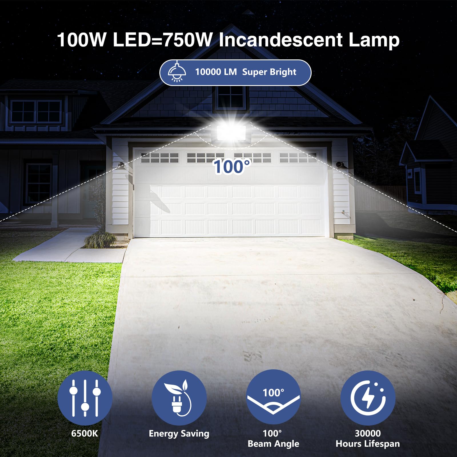 REALKY 100W LED Reflektor Zewnętrzny 10000LM IP65 Wodoodporny 6500K
