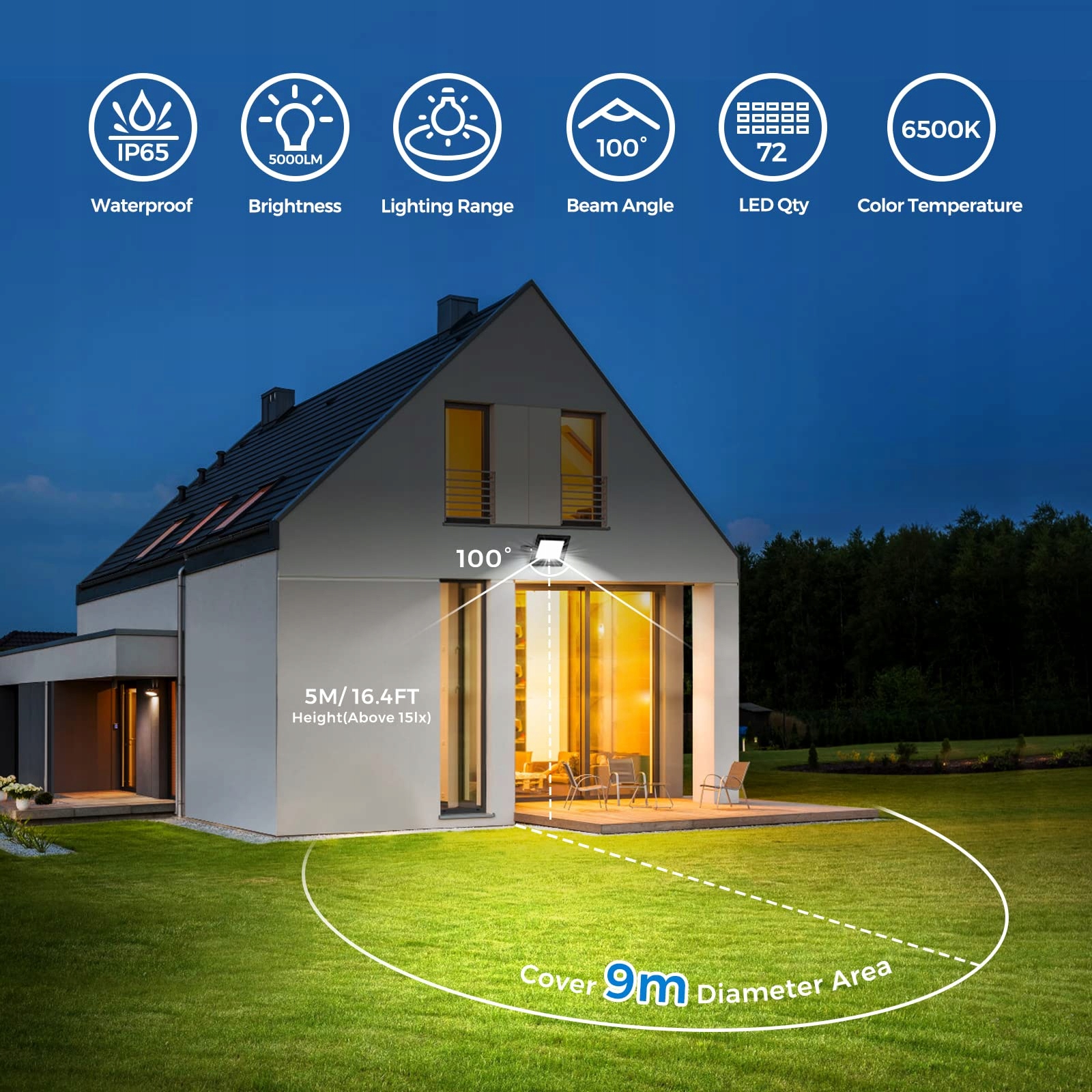 Realky 50W LED Reflektor, LED Reflektor Zewnętrzny 72 LED Solarne Lampy IP65 Wodoodporne 5000LM Reflektor Zewnętrzny 6500K LED Reflektor Zimna Biała Lampa do Ogrodu, Dziedzińców, Garaży
