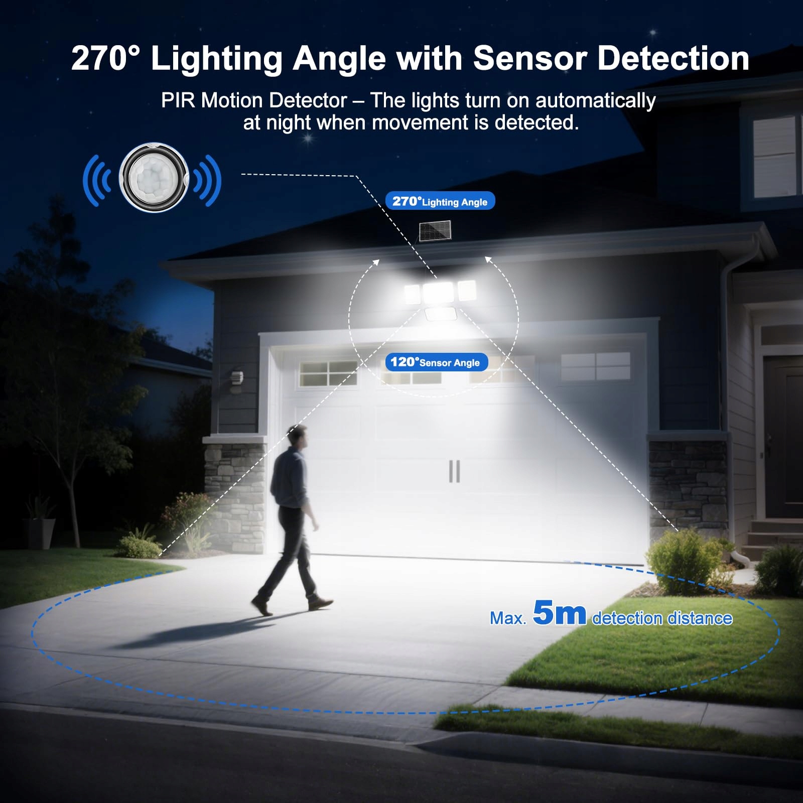 🌞【3 tryby czujnika światła – większa oszczędność energii】 Lampa solarna ma szeroki kąt wykrywania 120°, a zasięg czujnika ruchu wynosi 0-5 metrów. Gdy wykryje ruch, światło słoneczne włącza się automatycznie; gdy ruch nie jest wykrywany, wyłącza się automatycznie. Obsługuje dostosowanie 3 trybów oświetlenia indukcyjnego, aby spełnić Twoje wymagania dotyczące użytkowania w różnych scenariuszach.