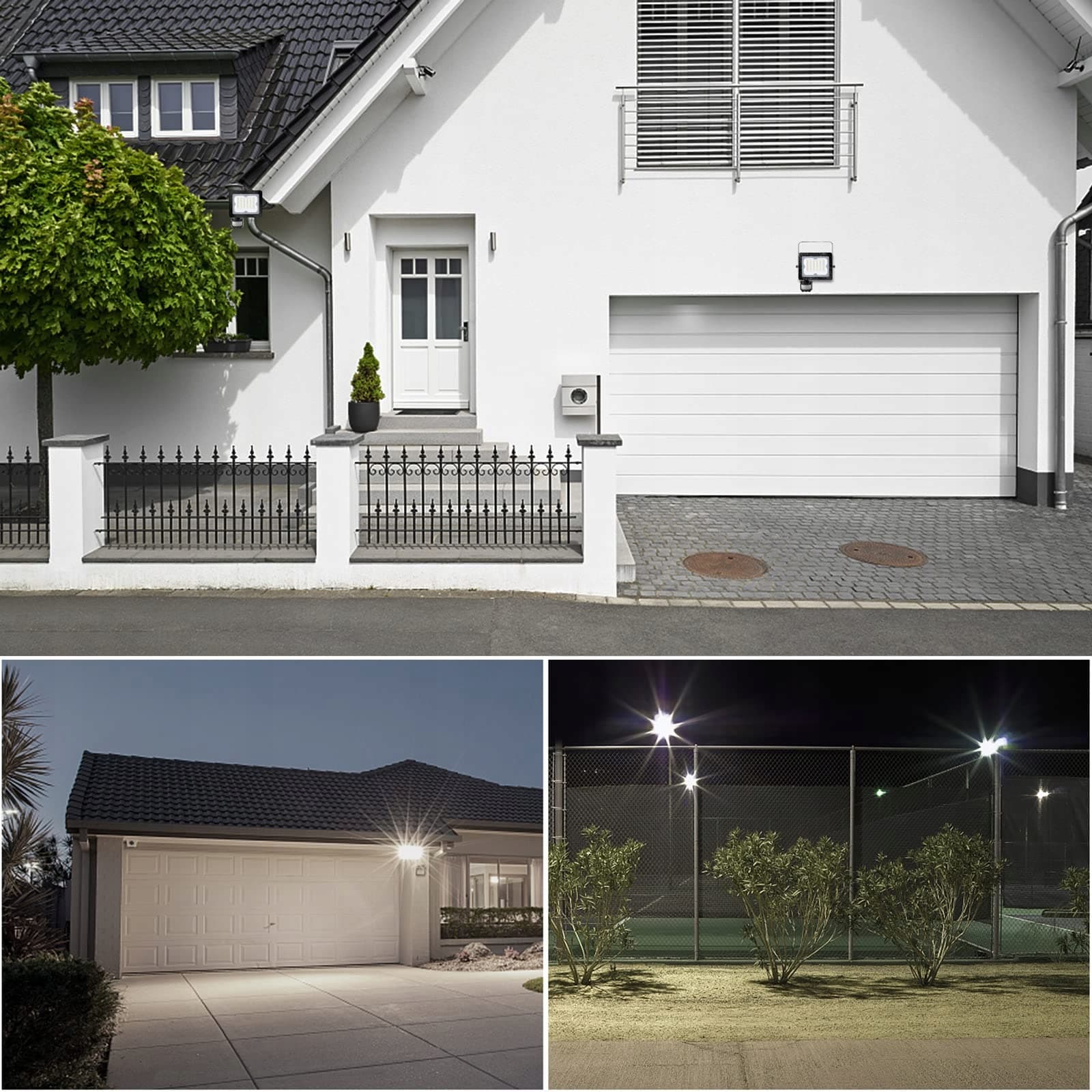 [Super jasny reflektor LED z czujnikiem ruchu na zewnątrz] Zewnętrzne oświetlenie z czujnikiem ruchu z bardziej wrażliwym PIR (pasywna detekcja podczerwieni) może wykrywać obszar 12 m pod kątem 180°, a zakres wykrywania i czułość są o 50% wyższe niż w tradycyjnych produktach LED. 30 cm kabel przedłużający zapewnia więcej opcji scenariuszy użytkowania. Idealne do oświetlenia zewnętrznego na tarasach, w dziedzińcach, magazynach, garażach i więcej.