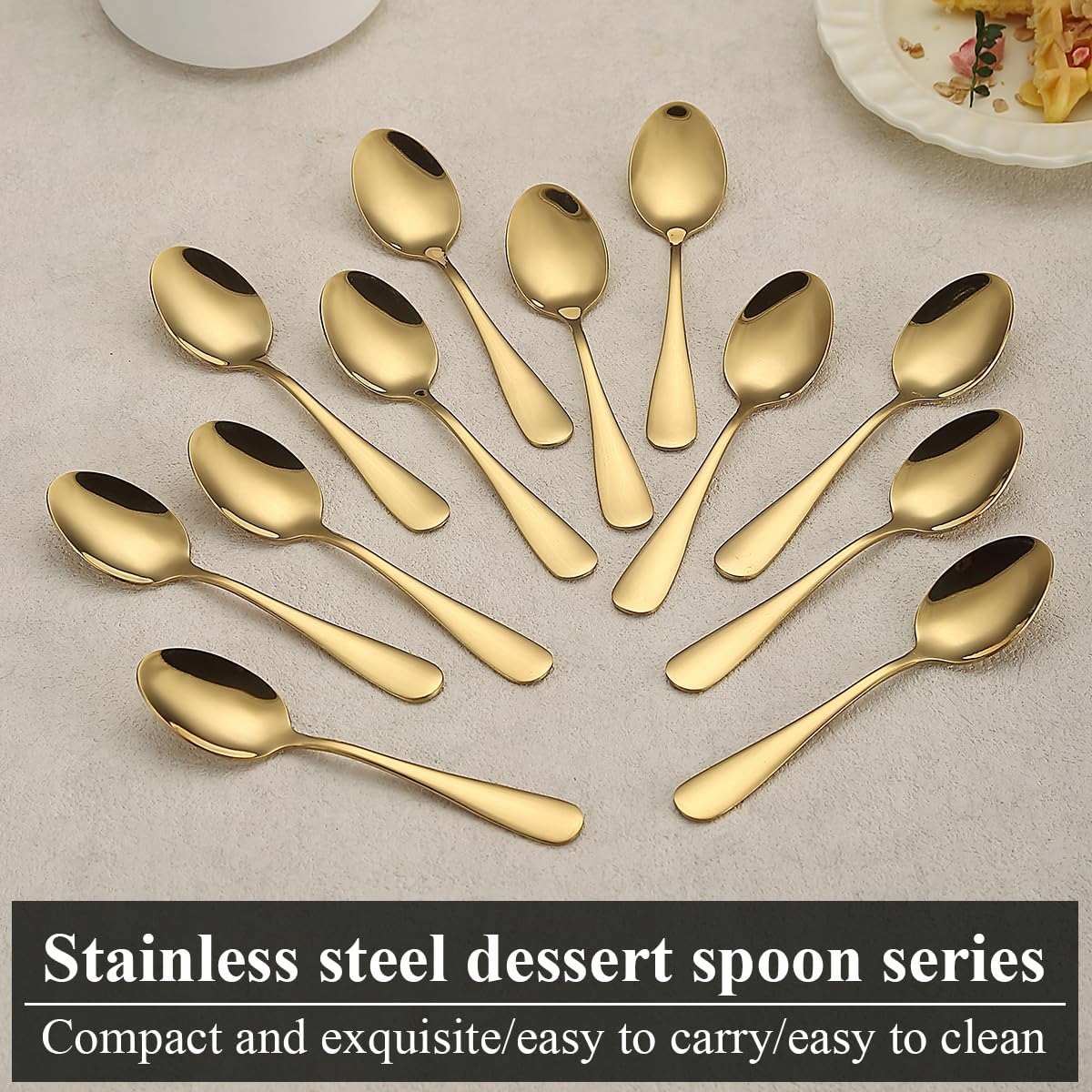 Wysoka jakość: łyżeczki wykonane są z bezpiecznej dla żywności stali nierdzewnej, trudno je wygiąć, są mocne i trwałe, odporne na rdzę, mogą być używane przez wiele lat.