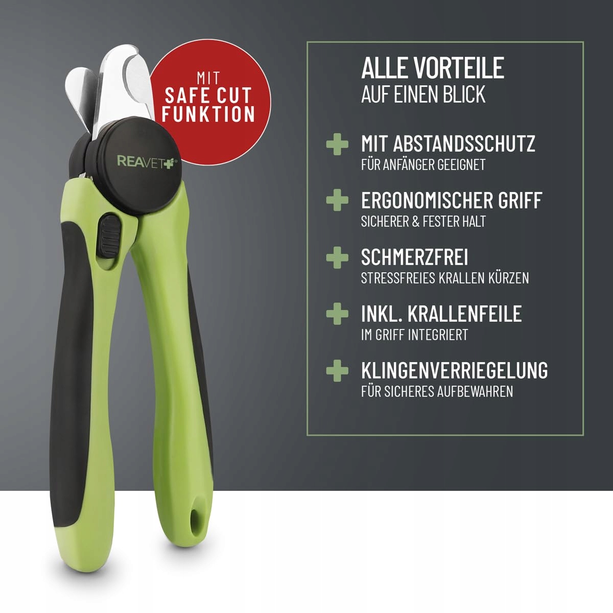 DODATKOWE BEZPIECZEŃSTWO DZIĘKI OGRANICZNIKOWI - Nasz obcinacz do pazurów ReaVET z ogranicznikiem za ostrzem precyzyjnie reguluje długość cięcia i zapewnia bezpieczne użytkowanie
