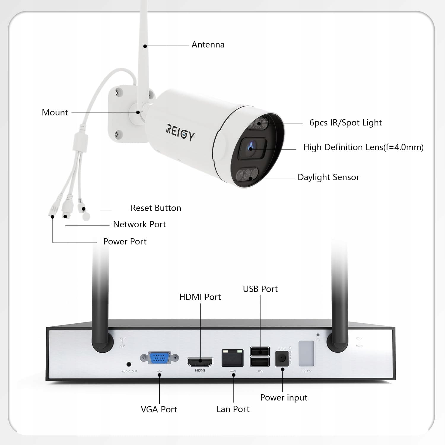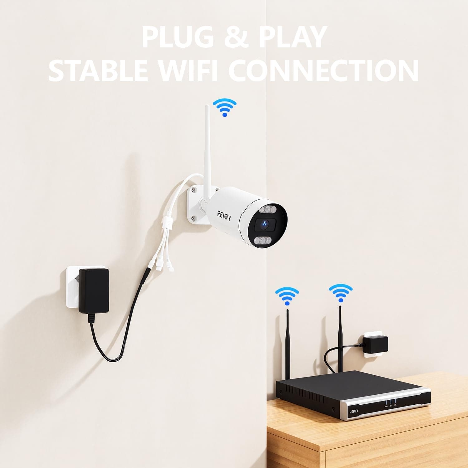 【Plug-and-Play, kamera HD 5MP】Kamera REIGY przesyła obrazy przez WLAN do NVR. Proste kroki instalacji: wystarczy podłączyć kamerę i zasilacz NVR, aby wyświetlić wideo. Nie musisz martwić się o problemy z okablowaniem. Kamera rejestruje każde zdarzenie w Twoim domu z ultraczystą rozdzielczością 5 MP (2560 x 1920).