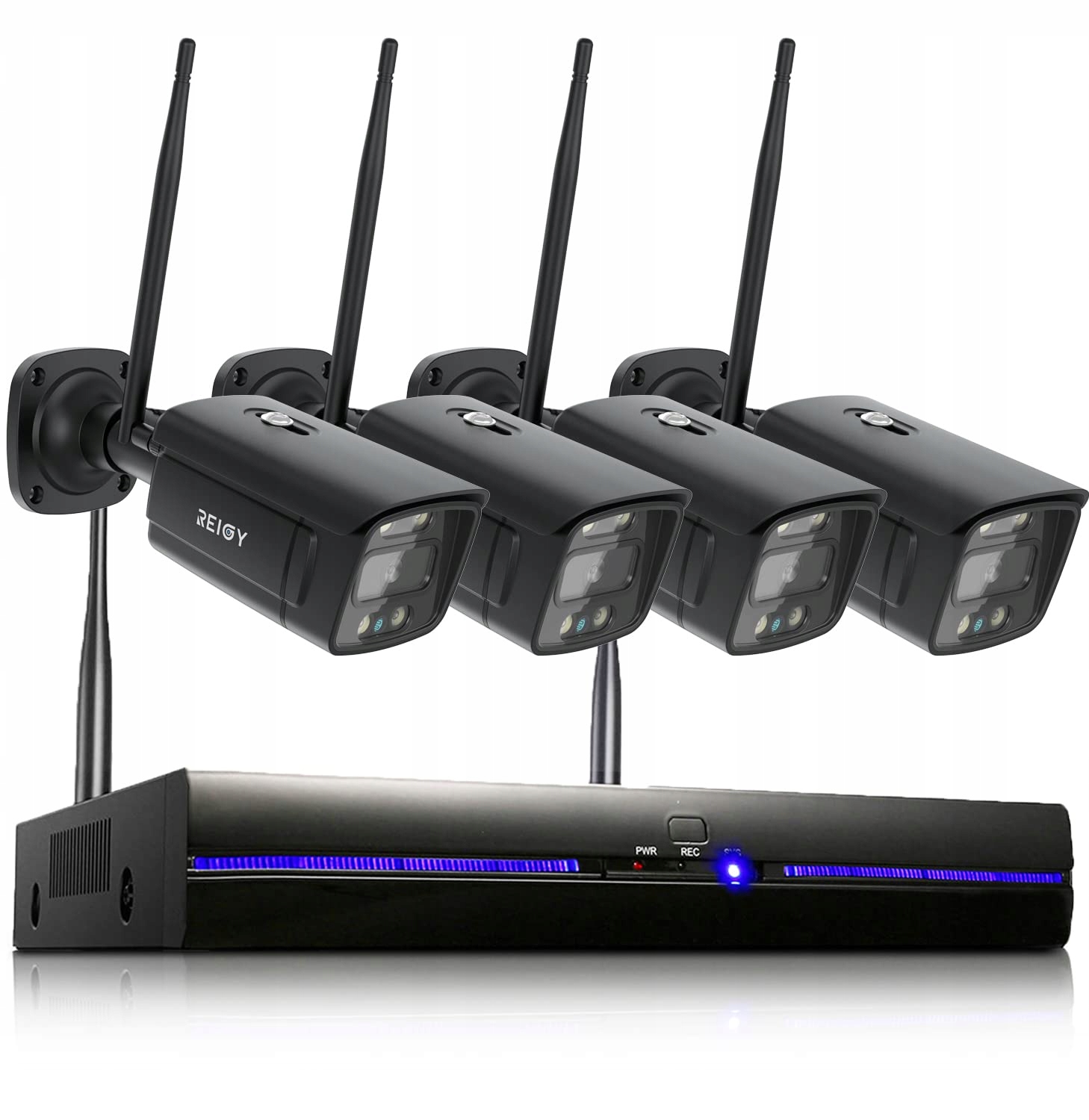 REIGY Zestaw Kamer 3MP WLAN Zewnętrzny z Reflektorem 4x1296P Audio