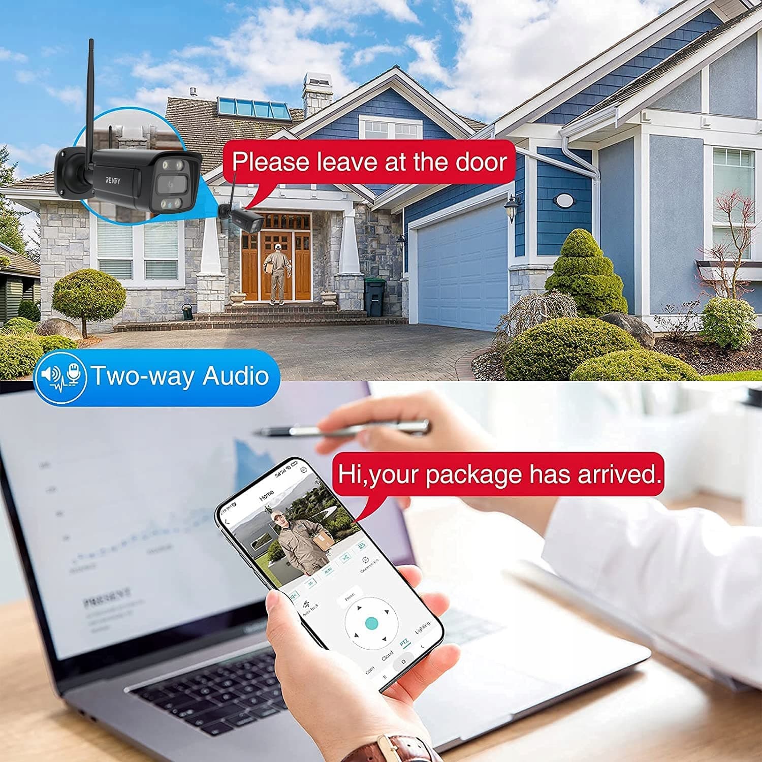 【Dwukierunkowy dźwięk i wodoodporność IP66】Zestaw kamer do monitoringu posiada wbudowany głośnik i mikrofon, możesz rozmawiać z osobami znajdującymi się w pobliżu kamery w dowolnym czasie i miejscu, a nawet odstraszać intruzów. Kamera zewnętrzna ma solidną aluminiową obudowę i wodoodporną konstrukcję IP66. Może utrzymać doskonałą wydajność nawet w ekstremalnych warunkach pogodowych, takich jak śnieg, mróz i słońce.