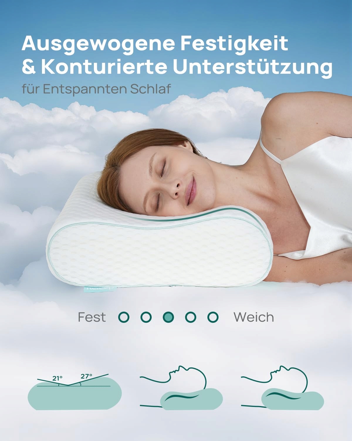【Stabilna i Wygodna】 - Dzięki Releep DYNAMIC FOAM ergonomiczna poduszka zachowuje tę samą twardość i komfort przez cały rok. Poduszka idealnie dopasowuje się do Twojego ciała i pozycji snu (na plecach, boku lub brzuchu). Podąża za naturalnymi konturami ciała, podtrzymuje szyję i głowę, zapewniając maksymalny komfort