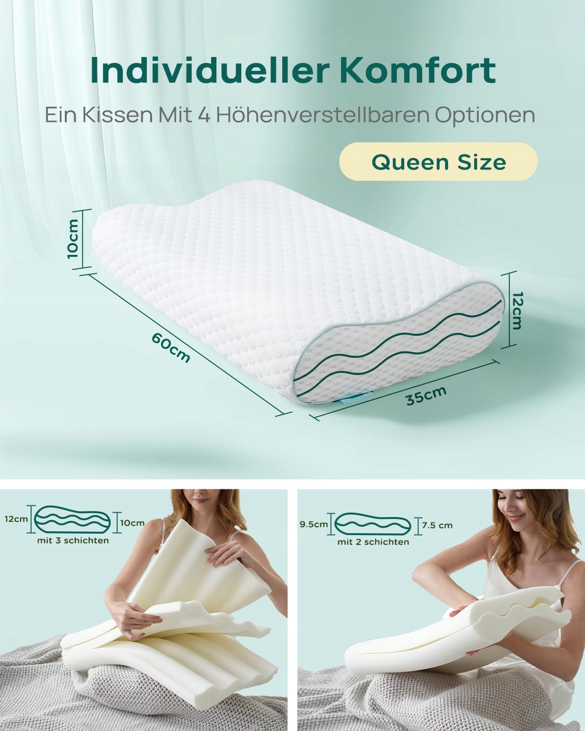 【Regulowana Wysokość】 - Poduszka Releep posiada unikalne, regulowane WARSTWY FALISTE. Spełnia potrzeby różnych śpiących, zapewniając równomierne wsparcie przy regulacji wysokości i skutecznie łagodzi nacisk. Ortodontyczna poduszka do spania ma wysokość 12cm/10cm. Po usunięciu środkowej warstwy pianki uzyskuje się wysokość 9,5cm/7,5cm