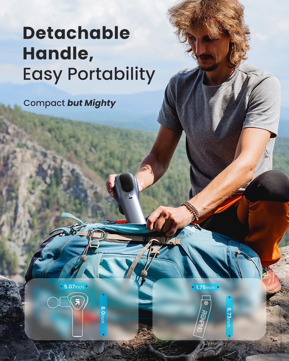 Odłączany przedłużony uchwyt: Ergonomiczny design uchwytu antypoślizgowego pistoletu do masażu umożliwia łatwe dotarcie do pleców i innych trudno dostępnych miejsc, aby zapewnić relaksujący masaż samodzielnie, jak zwykły pistolet do masażu.