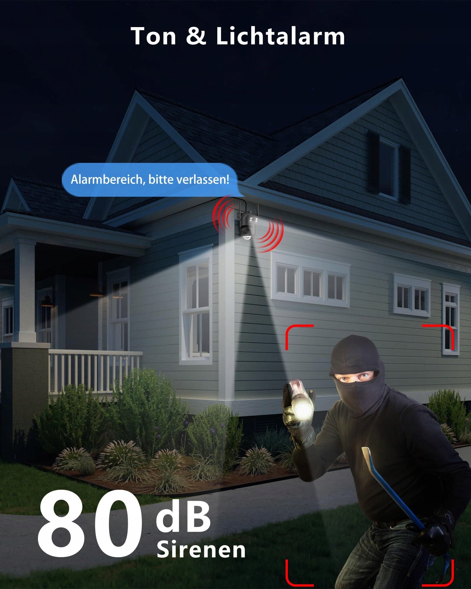 【Dwukierunkowe audio i alarm】 Kamera zewnętrzna obsługuje komunikację na żywo i umożliwia interakcję z gośćmi i kurierami za pomocą smartfona. Kamera zewnętrzna emituje silne błyski światła i głośny sygnał alarmowy, aby odstraszyć intruzów i wzmocnić aktywną ochronę przed kradzieżą