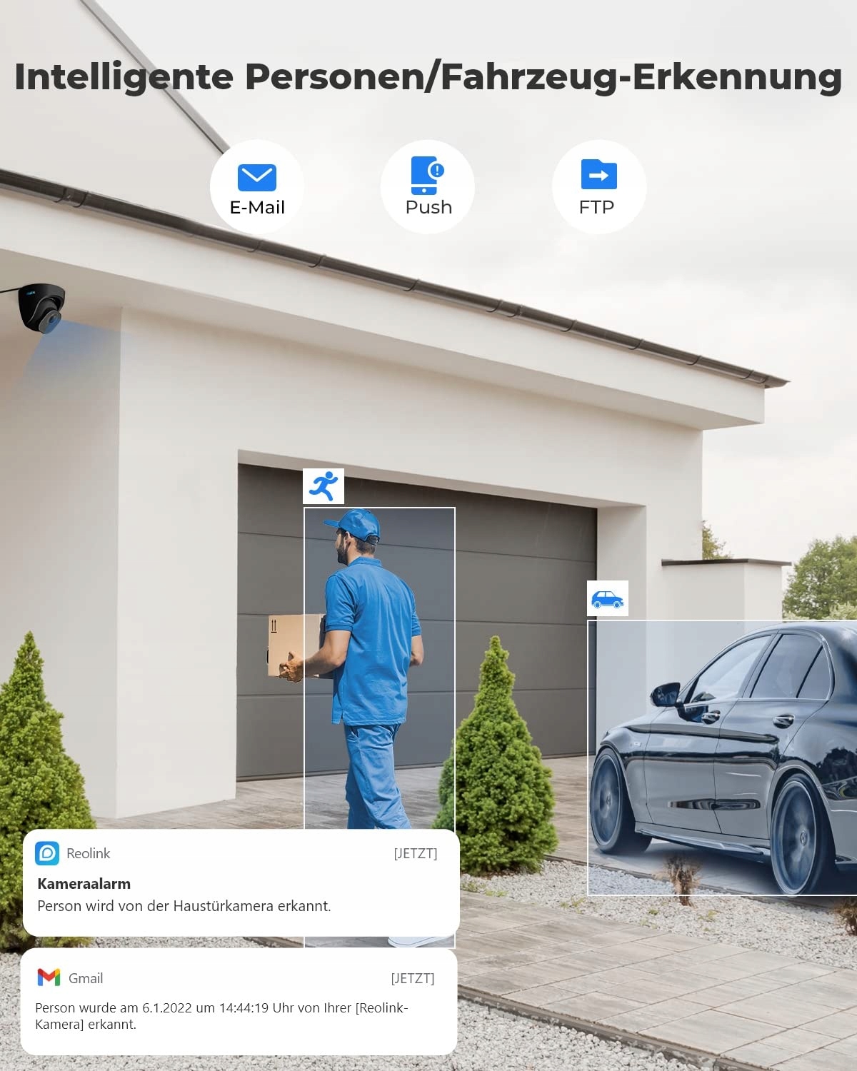 Wykrywanie ludzi/pojazdów: Ta kamera IP jest wyposażona w technologię wykrywania na urządzeniu i może odróżniać ludzi i pojazdy od innych obiektów. Dzięki precyzyjnemu wykrywaniu możesz lepiej monitorować prawdziwe zagrożenia i uwolnić swoje myśli od niepotrzebnych ostrzeżeń