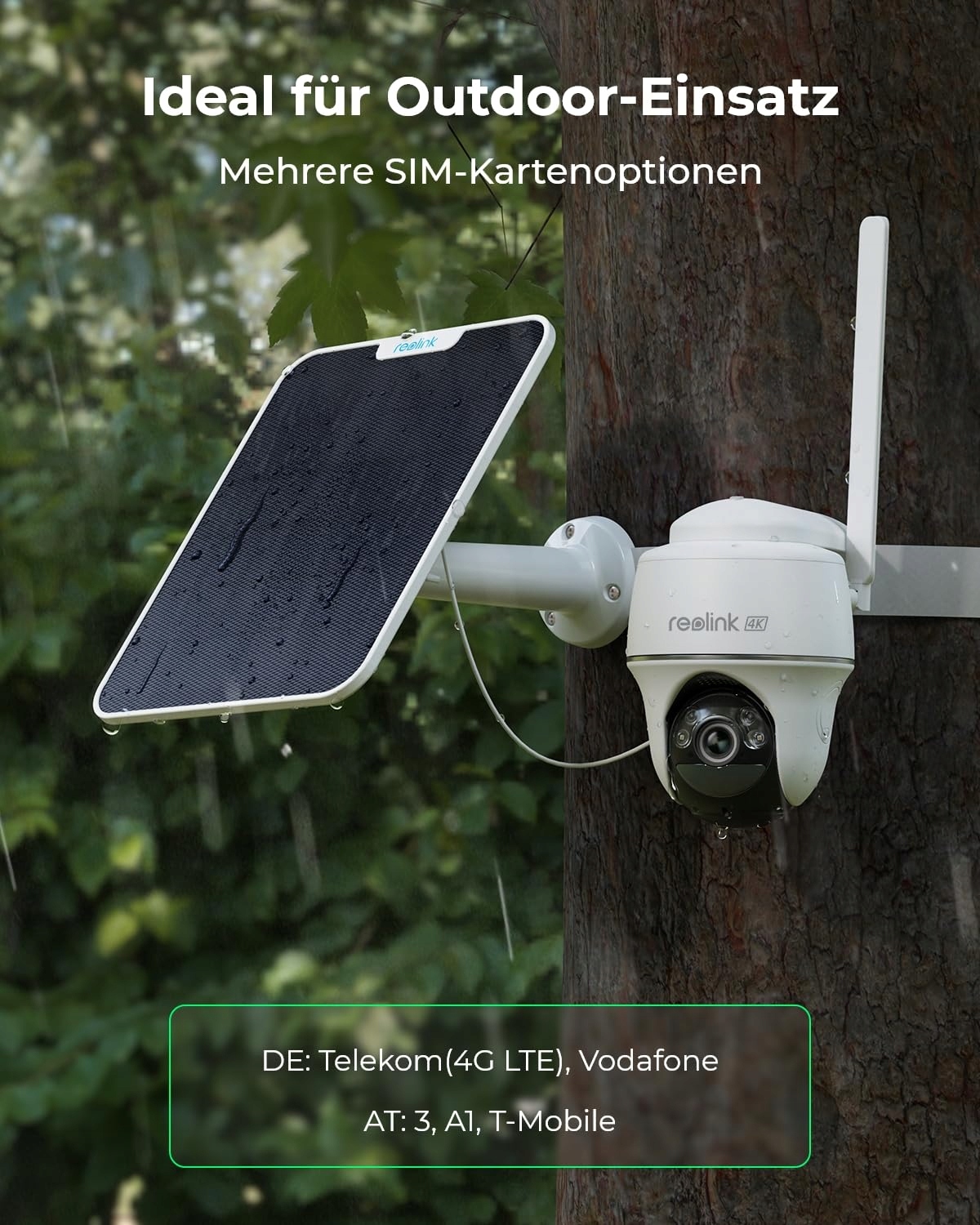 Samodzielna, idealna do użytku na zewnątrz: Dzięki połączeniu panelu słonecznego 6W i 4G w tej samodzielnej kamerze 4G nie musisz szukać gniazdek ani sieci w dziczy. Ta kamera 4G LTE na zewnątrz obsługuje karty Nano-SIM różnych operatorów w różnych krajach: Telekom, Vodafone, 3, A1, T-Mobile, Swisscom, Sunrise, Salt itd.