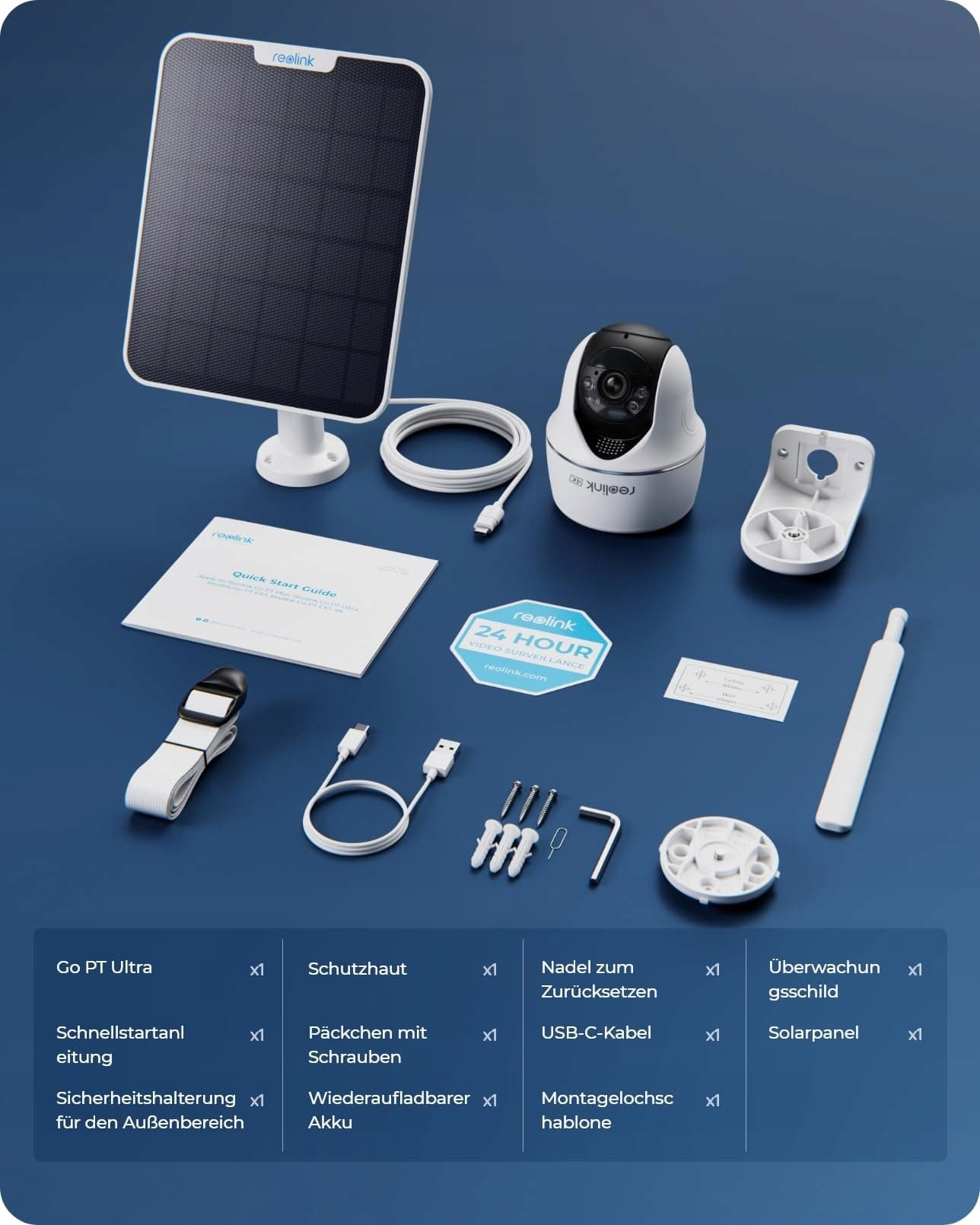 Reolink 4K 3G/4G LTE Kamera do monitoringu z gniazdem na kartę SIM, 355°&140° PTZ Kamera słoneczna na zewnątrz z 8MP widzeniem nocnym w kolorze, wykrywanie osób/pojazdów/zwierząt domowych, karta microSD 32GB, panel słoneczny Go PT Ultra+6W
