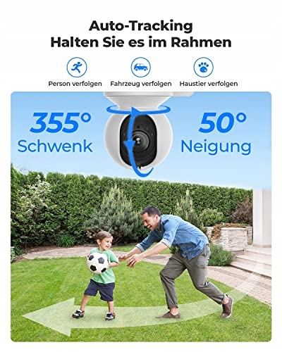8MP i PTZ dla większej ilości szczegółów: Kamera może obracać się (355°) i pochylać (50°), aby zapewnić Ci widok 360° na otoczenie. Rozdzielczość 4K zapewnia jeszcze wyraźniejsze szczegóły. Obiektyw z zoomem optycznym umożliwia 3-krotne powiększenie szczegółów bez utraty jakości Ultra HD.
