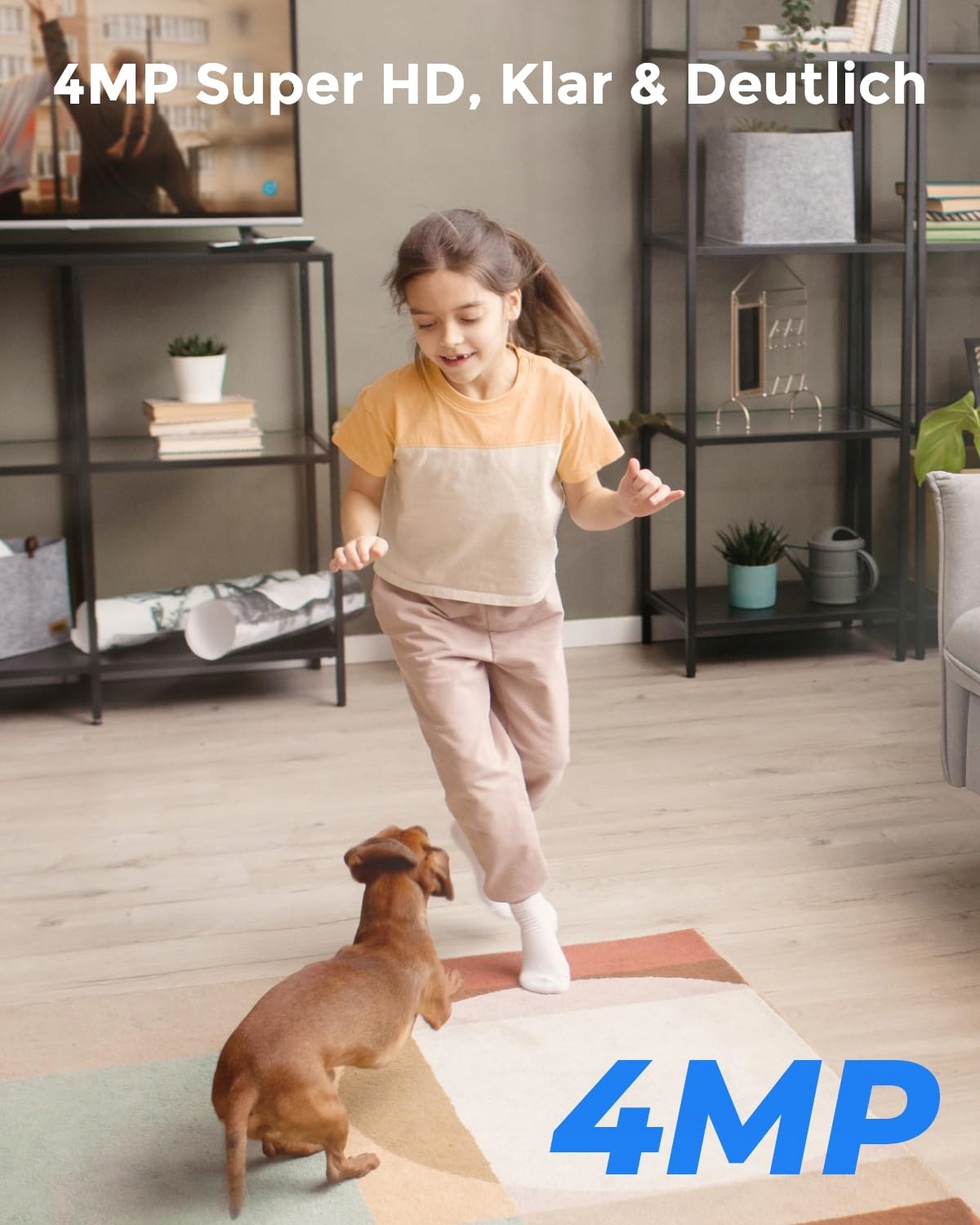 Wyraźny obraz w dzień i w nocy: Kamera oferuje ostre obrazy 2K z najdrobniejszymi szczegółami. Dzięki wysokiej jakości nocnemu widzeniu do 12m nic nie umknie Twojej uwadze nawet w nocy.