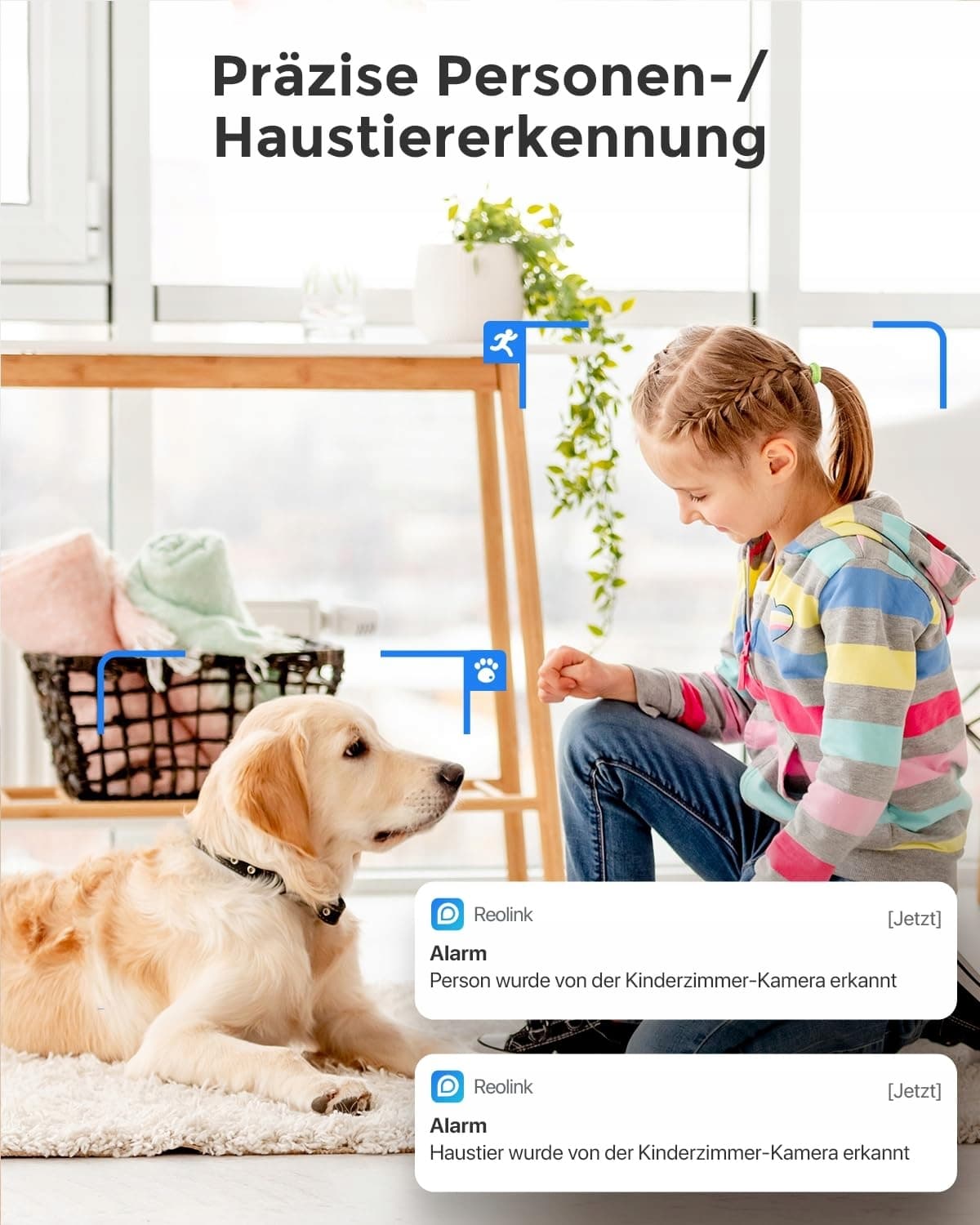Rozpoznawanie osób/zwierząt domowych: Kamera potrafi rozpoznać osoby i zwierzęta domowe oraz wysyłać powiadomienia o ruchu w czasie rzeczywistym. Nic ważnego nie umknie Twojej uwadze.