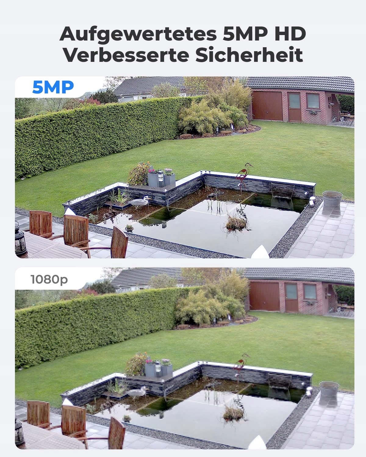 Ostry obraz 5MP Super HD i nagrywanie dźwięku: Dzięki wysokiej rozdzielczości 5MP kamera bezpieczeństwa IP może rejestrować krystalicznie czysty obraz z żywymi detalami. Wbudowany mikrofon nagrywa również dźwięki otoczenia, zapewniając dodatkowe bezpieczeństwo.