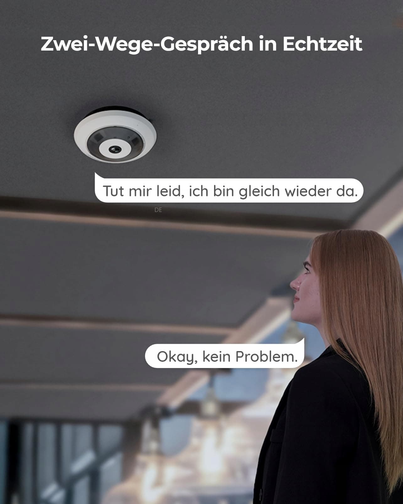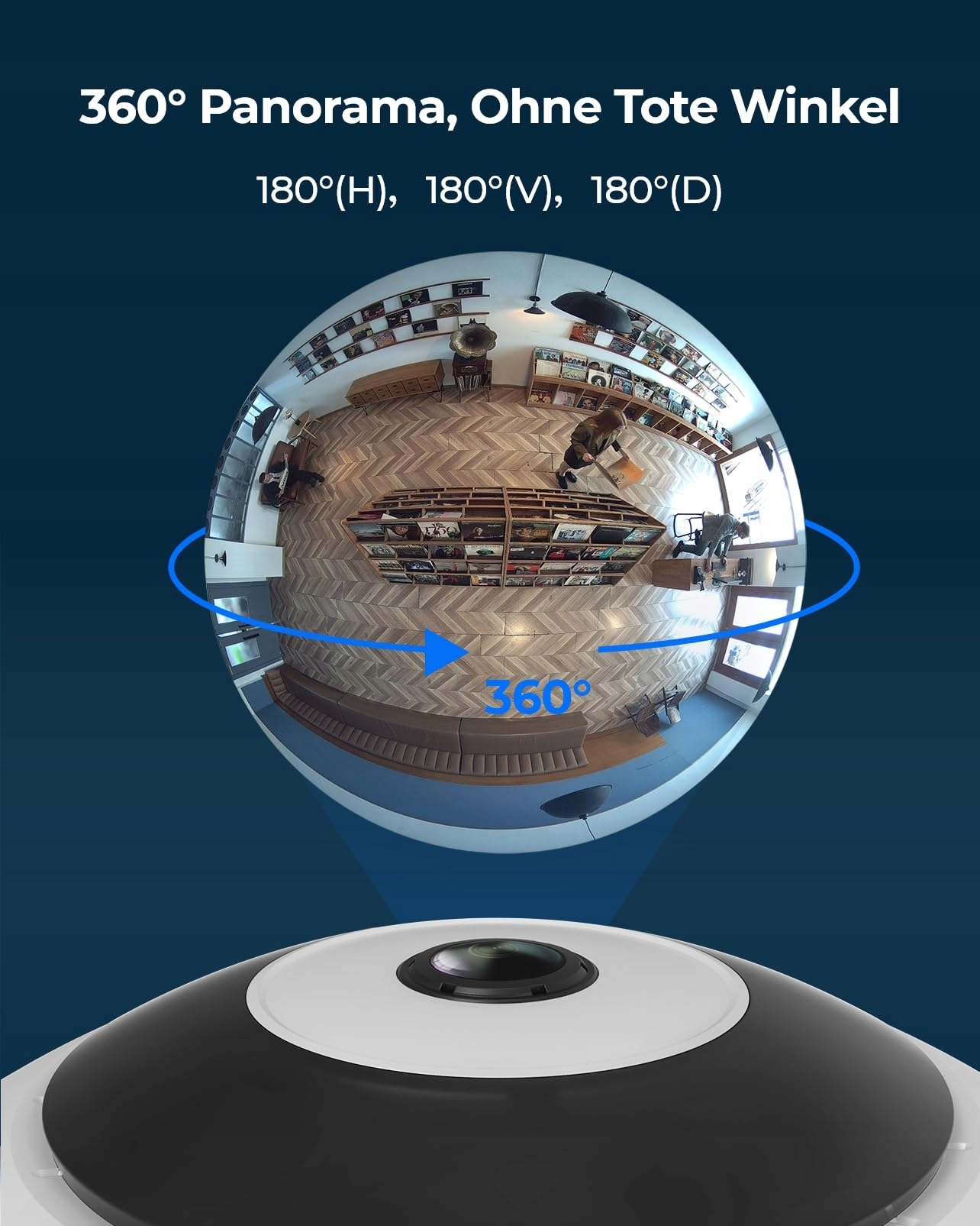 360° widok panoramiczny: Kamera monitorująca oferuje widok 360° z kątem widzenia 180° we wszystkich kierunkach, pokrywając wszystkie zakątki Twojego biznesu, biura, sali konferencyjnej, magazynu, bez potrzeby przestawiania kamery.