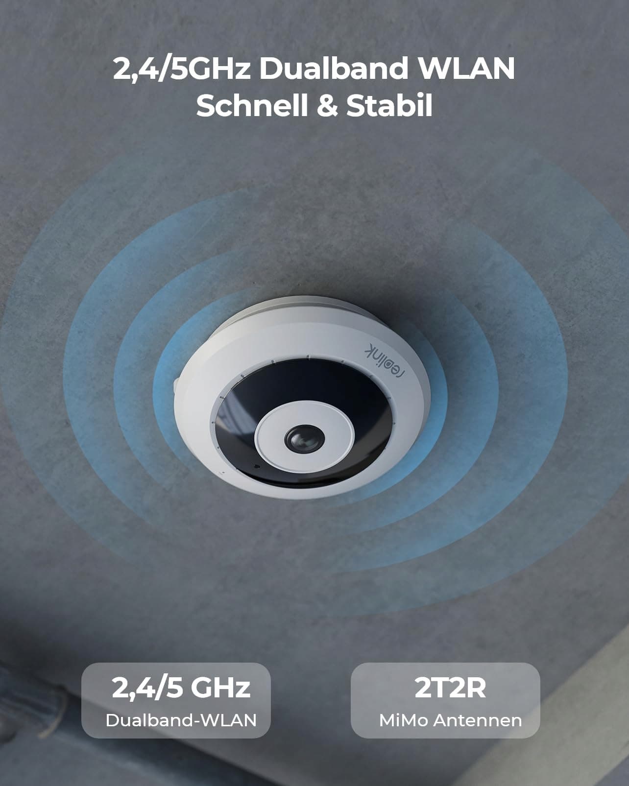 WLAN dualband 2,4/5 GHz dla bezpieczeństwa wewnętrznego: Dzięki WLAN konfiguracja jest prosta. Silniejsze sygnały sieciowe na paśmie 5GHz lub lepsza wydajność na długich odległościach transmisji na paśmie 2,4GHz.
