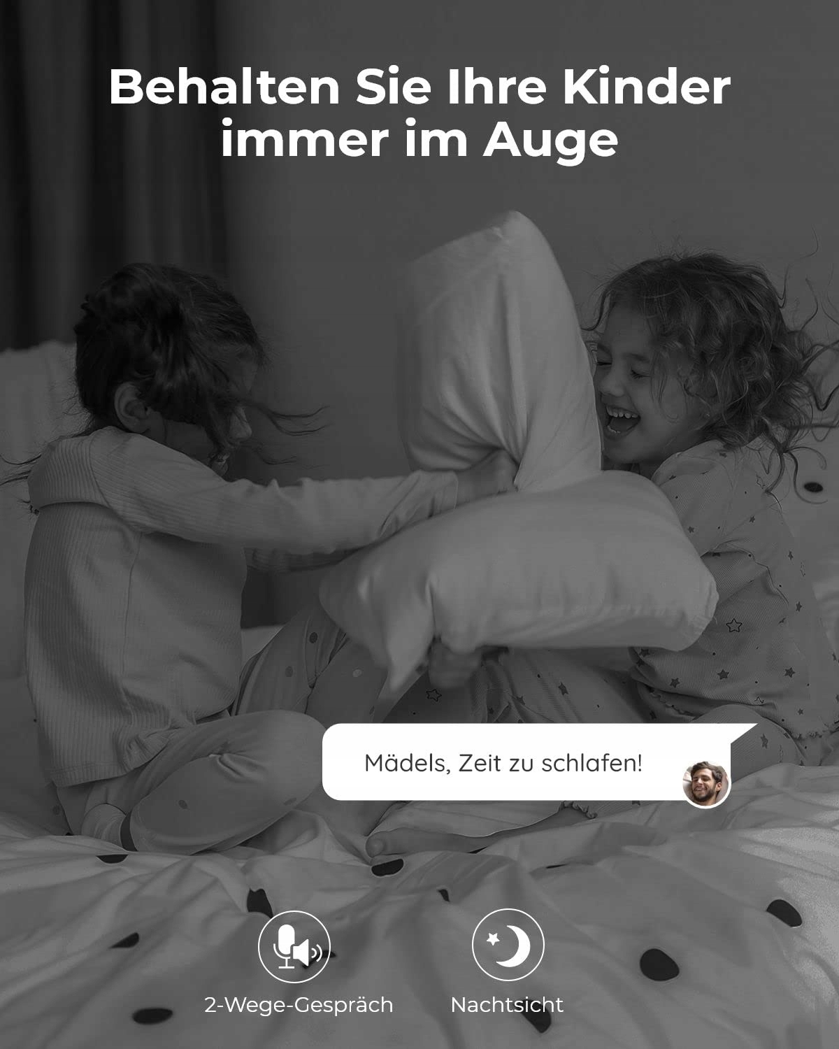 3MP 12m nocna wizja: Dzięki rozdzielczości 3MP kamera monitorująca Reolink E1 dostarcza znacznie wyraźniejsze filmy niż kamery 1080p. Diody LED IR pozwalają wyraźnie zobaczyć każdy ruch Twojego dziecka i zwierzątka nawet w ciemności.