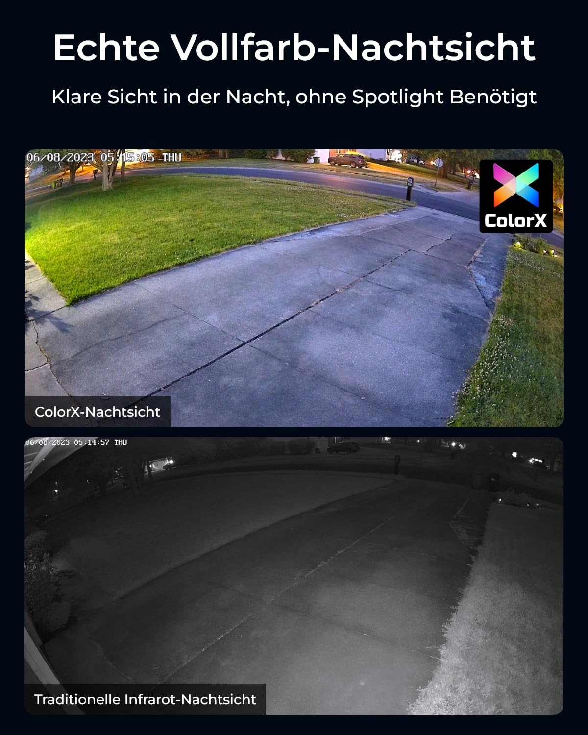 TECHNOLOGIA COLORX: Kamera monitoringu zewnętrznego oferuje zaawansowaną technologię ColorX dla żywej nocnej wizji bez reflektorów. Dzięki superprzesłonie F1,0, matrycy 1/1,8'' i modułowi ISP wszystkie szczegóły są rejestrowane nocą.