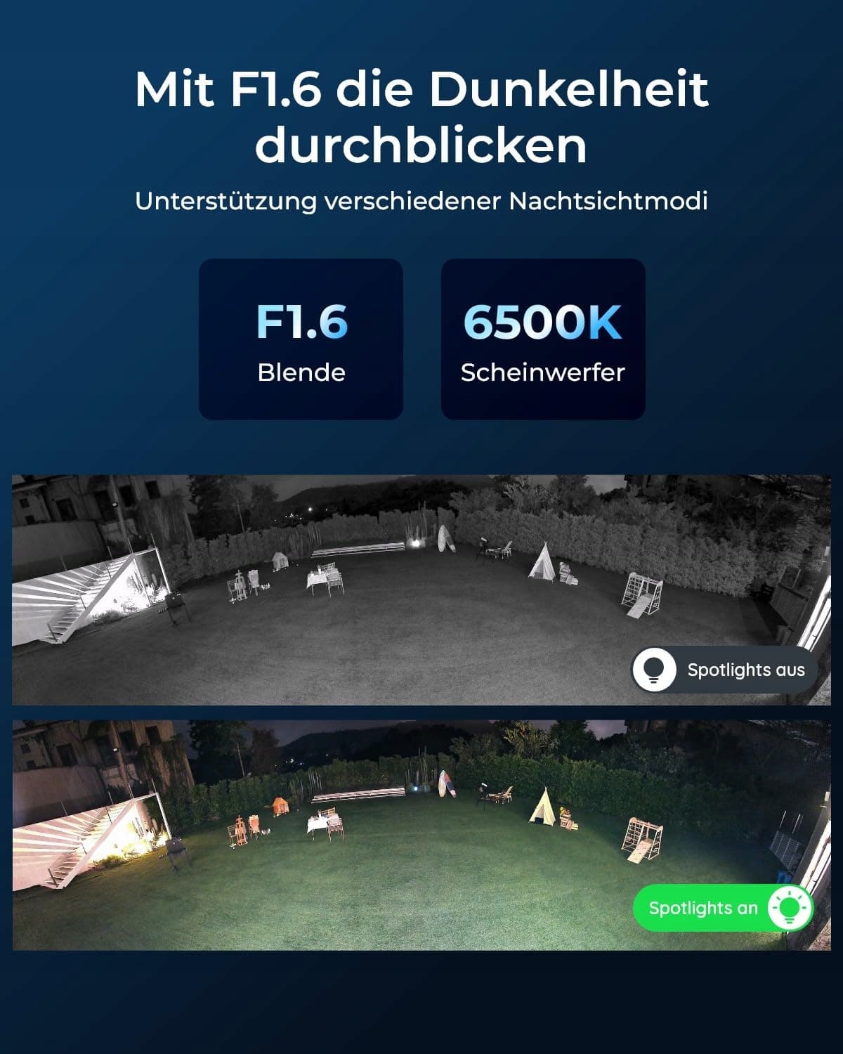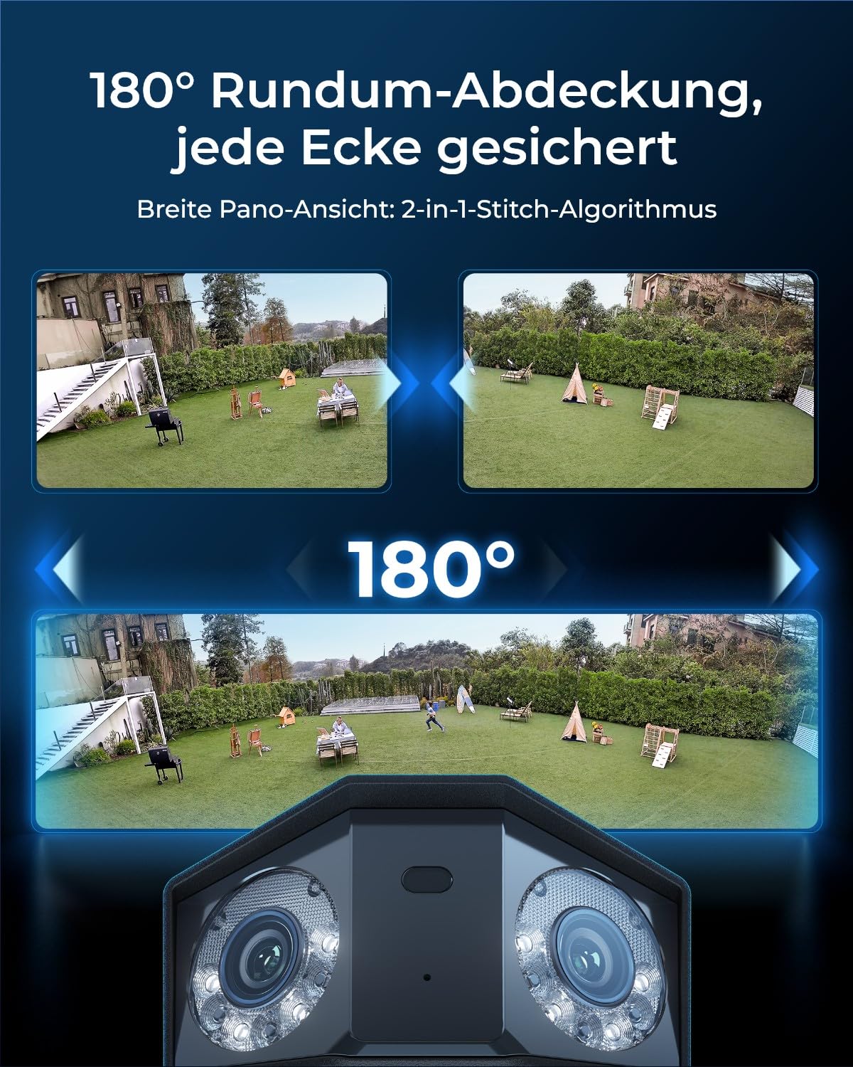 16MP UHD & KOLOROWE NOCNE WIDZENIE: Ta kamera monitorująca z podwójnym obiektywem na zewnątrz wyposażona jest w dwa czujniki obrazu 4K, aby uchwycić wszystkie szczegóły. Super przesłona F1.6 i czujnik CMOS 1/2,7'' umożliwiają lepsze zbieranie światła, podczas gdy 6 podczerwonych diod LED ujawnia wszystkie nocne szczegóły do 100 stóp.