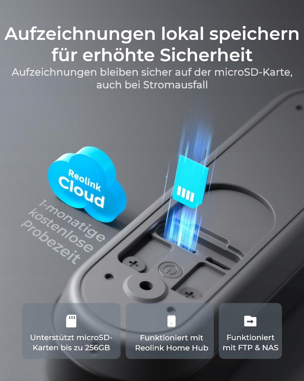 LOKALNE PRZECHOWYWANIE + DWIE METODY ŁADOWANIA: Dzięki obsłudze karty microSD do 256GB i Reolink Cloud możesz lokalnie przechowywać mnóstwo nagrań. Dodatkowo możesz połączyć ją z Reolink Home Hub (nie w zestawie), aby zwiększyć pojemność pamięci. Ciesz się wygodą wyboru między akumulatorem a stałym podłączeniem do zasilania dla ciągłego zasilania.