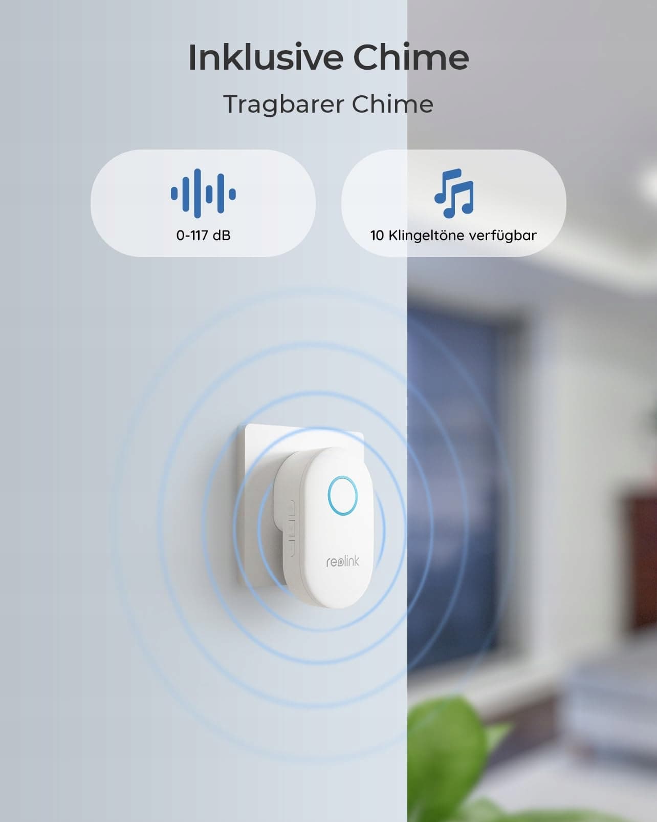 Reolink Video-Dzwonek z Chime, 5MP Ultra HD Przewodowy Dzwonek z Kamerą, 2,4/5GHz WiFi, Alarmy Wykrywania Osób, 180° Ultra Szeroki Kąt, Dwukierunkowe Audio, Zdalny Dostęp, Video Doorbell WiFi