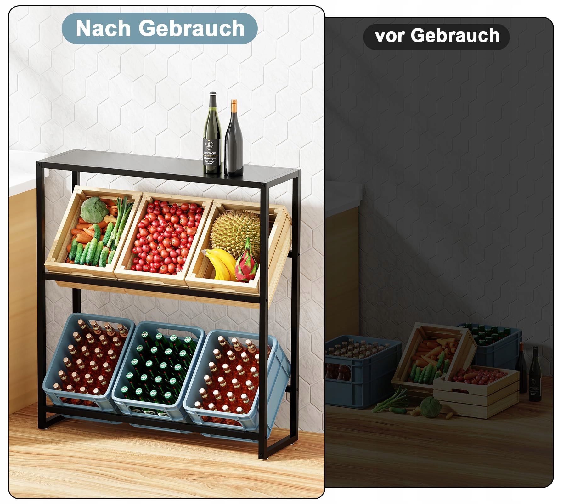 【Wszechstronne przechowywanie】Na regale można przechowywać nie tylko skrzynki z piwem lub wodą, ale także pojemniki i uniwersalne pudełka do przechowywania warzyw lub owoców. Tworzy dużą przestrzeń do przechowywania dzięki różnym poziomom, aby przechowywać różne kategorie