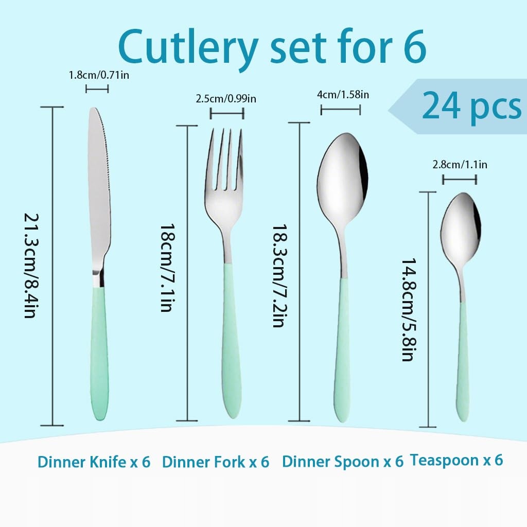 RETON Zestaw Sztućców 24 Elementy Stal Nierdzewna Zielony Dla 6 Osób