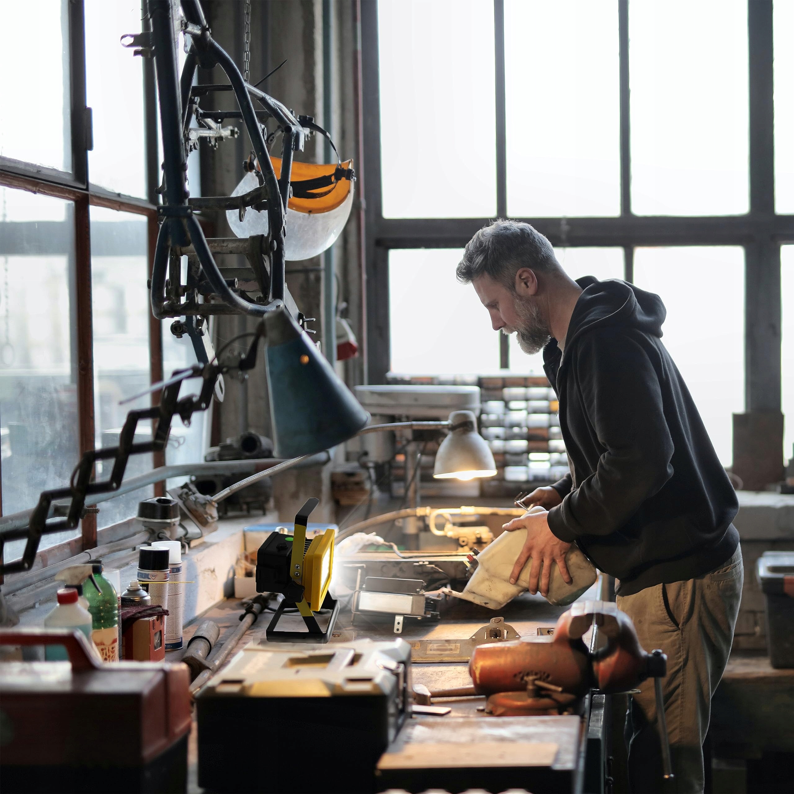 Przenośność – reflektor budowlany został wyposażony w praktyczny uchwyt, który umożliwia łatwe przenoszenie urządzenia. Dzięki temu lampa reflektora budowlanego może być łatwo zabrana wszędzie tam, gdzie potrzebne jest dodatkowe źródło światła. Niezależnie od tego, czy pracujesz w garażu, warsztacie czy na zewnątrz podczas kempingu czy wędrówek, reflektory budowlane zapewniają wygodne oświetlenie, którego potrzebujesz.
