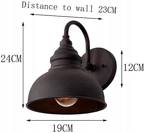 Zewnętrzna lampa ścienna Retro Ścienna lampa ścienna Vintage reflektor ścienny Czarny kolor rdzy 1-płomienna Wewnątrz/Na zewnątrz E27 metalowy klosz wodoodporny Korytarz Schody Taras Głowa drzwi Wejście Salon światło domu