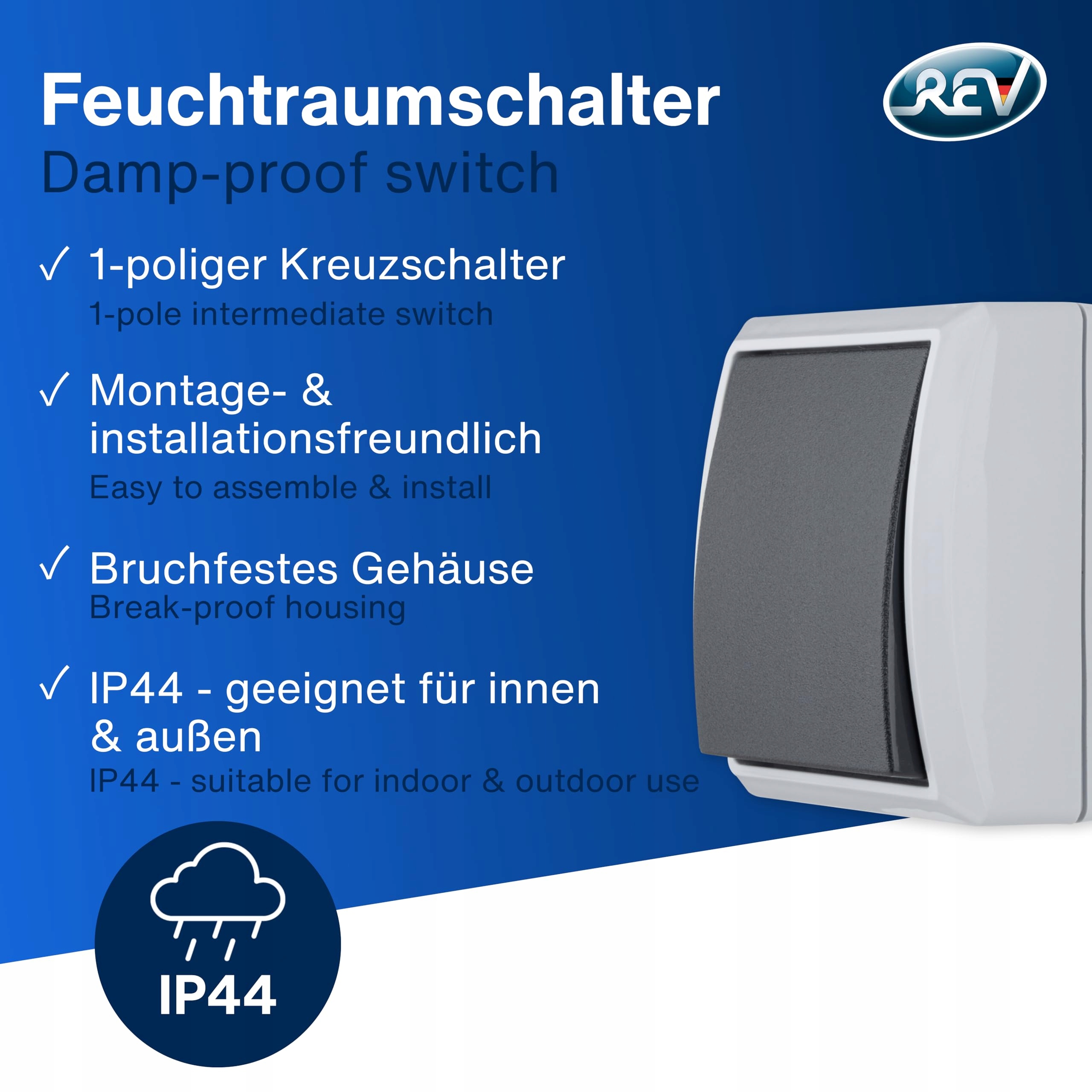 REV AquaForm Włącznik Krzyżowy Do Wilgotnych Pomieszczeń IP44 Szary | Premium Supply