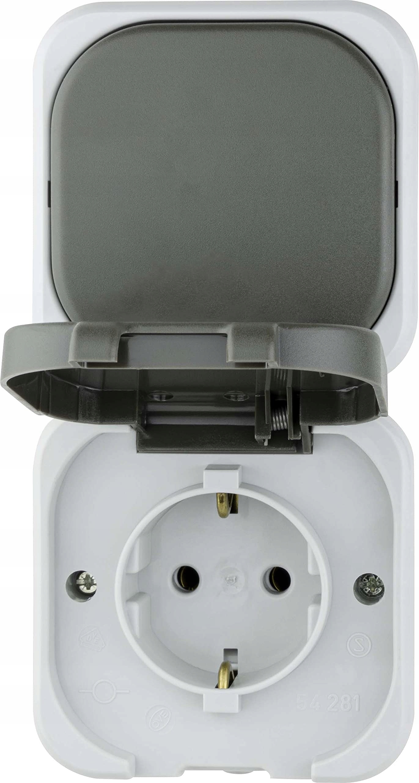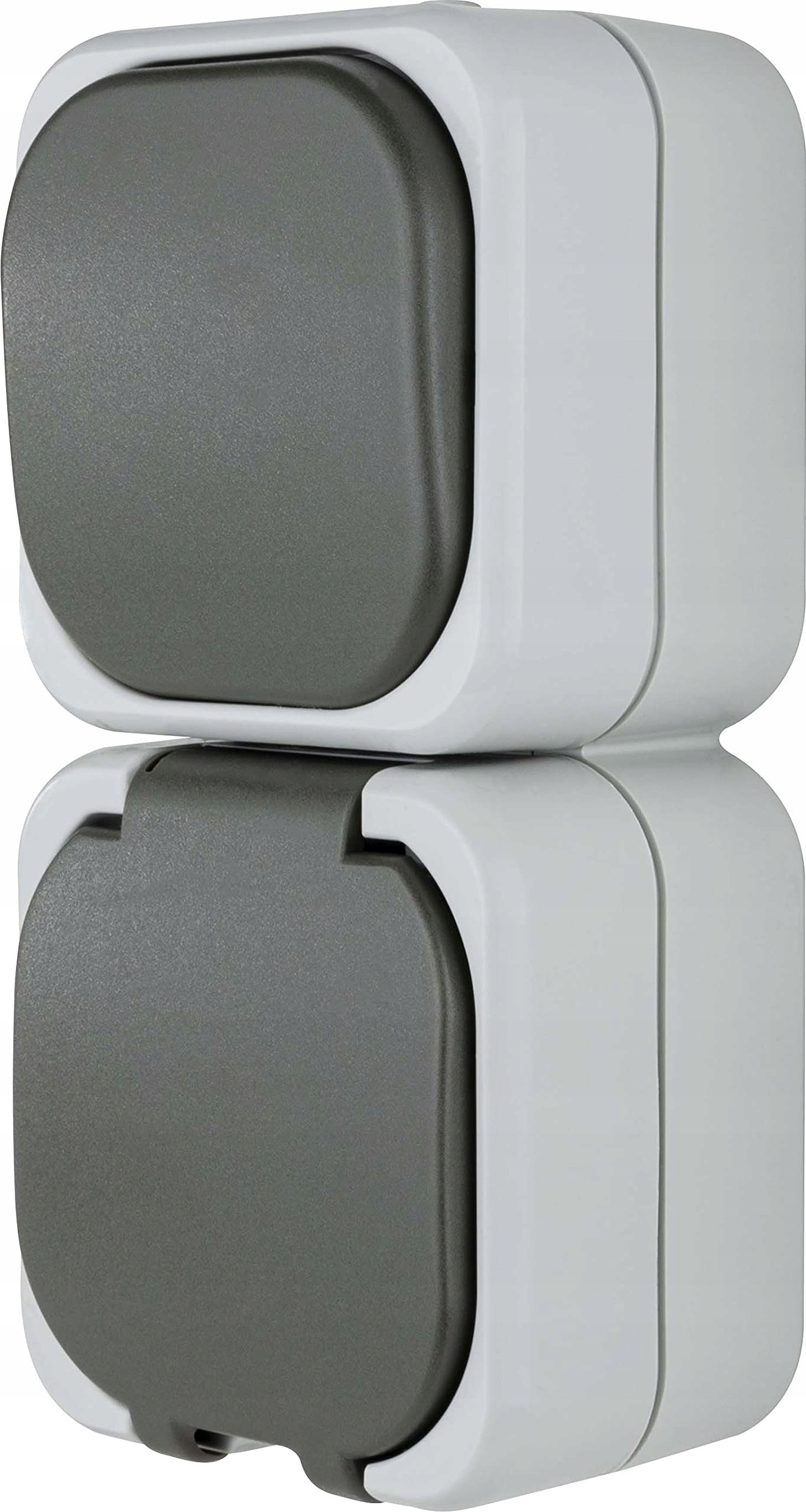 Naścienny przełącznik i gniazdo do użycia w piwnicy, warsztacie, garażu, hali, oborze itp. (Chroniony obszar zewnętrzny)