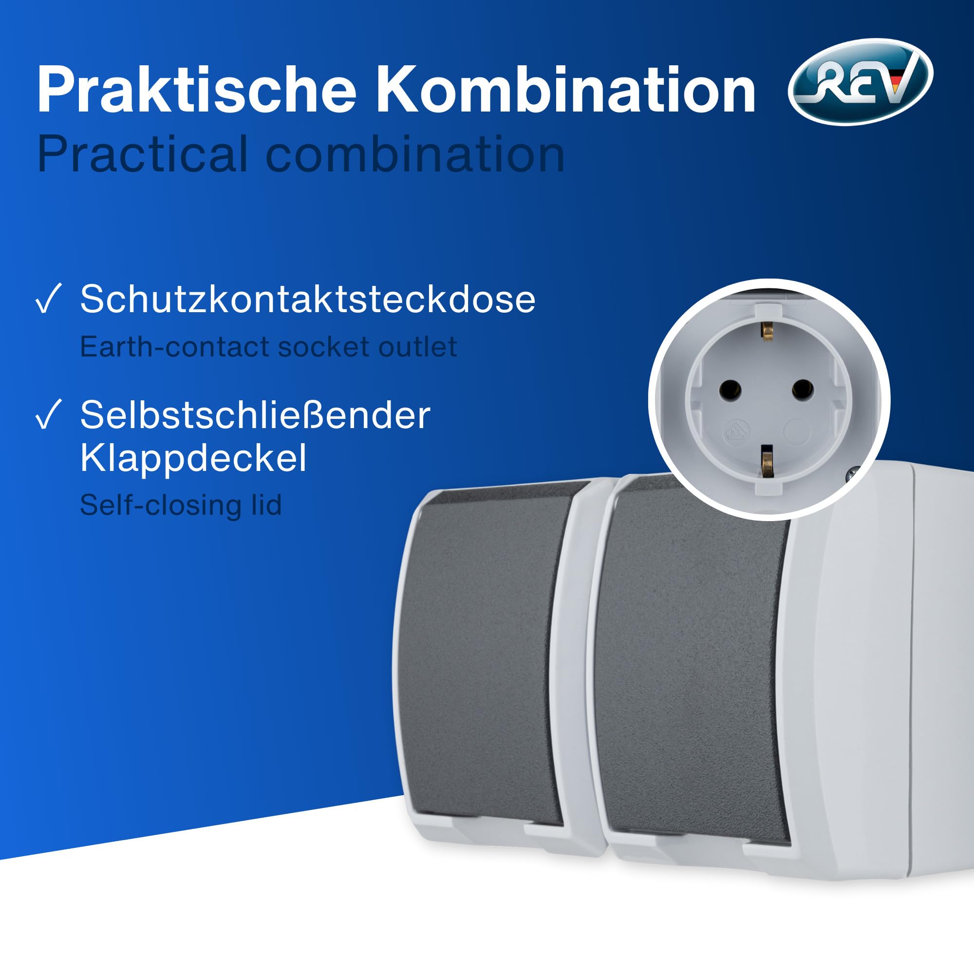 REV Gniazdo Podwójne Wodoodporne IP44 Montaż Natynkowy Szare | Premium Supply