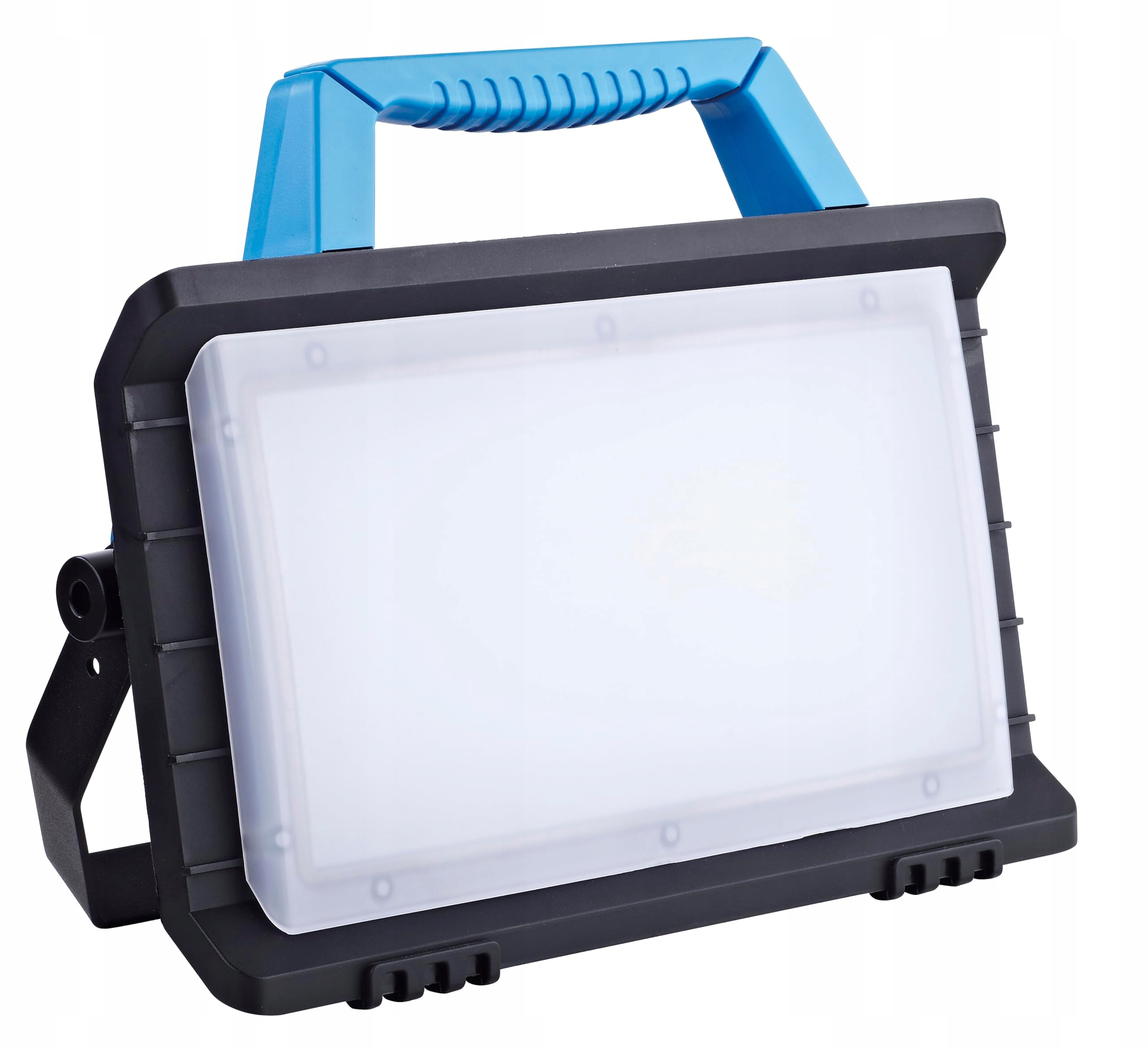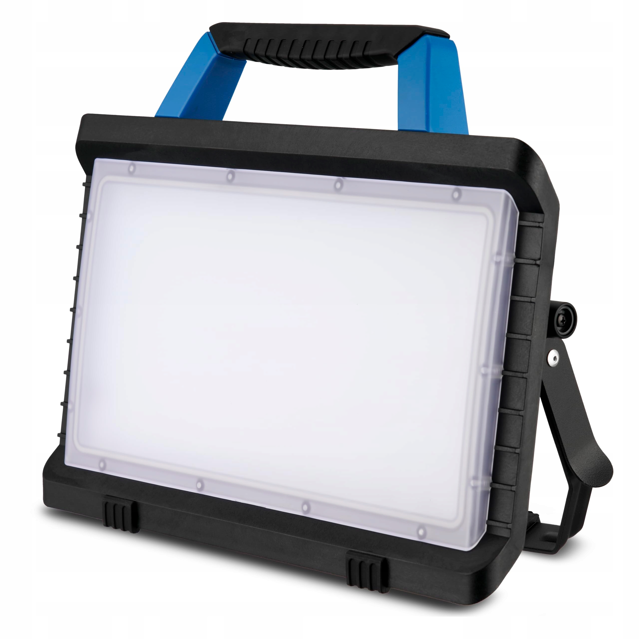 Lampa robocza LED posiada 2 gniazda z uziemieniem z podwyższonym zabezpieczeniem przed dotykiem (16A, maksymalnie 3400W). Lampa ma składaną podstawę i wygodny uchwyt do przenoszenia