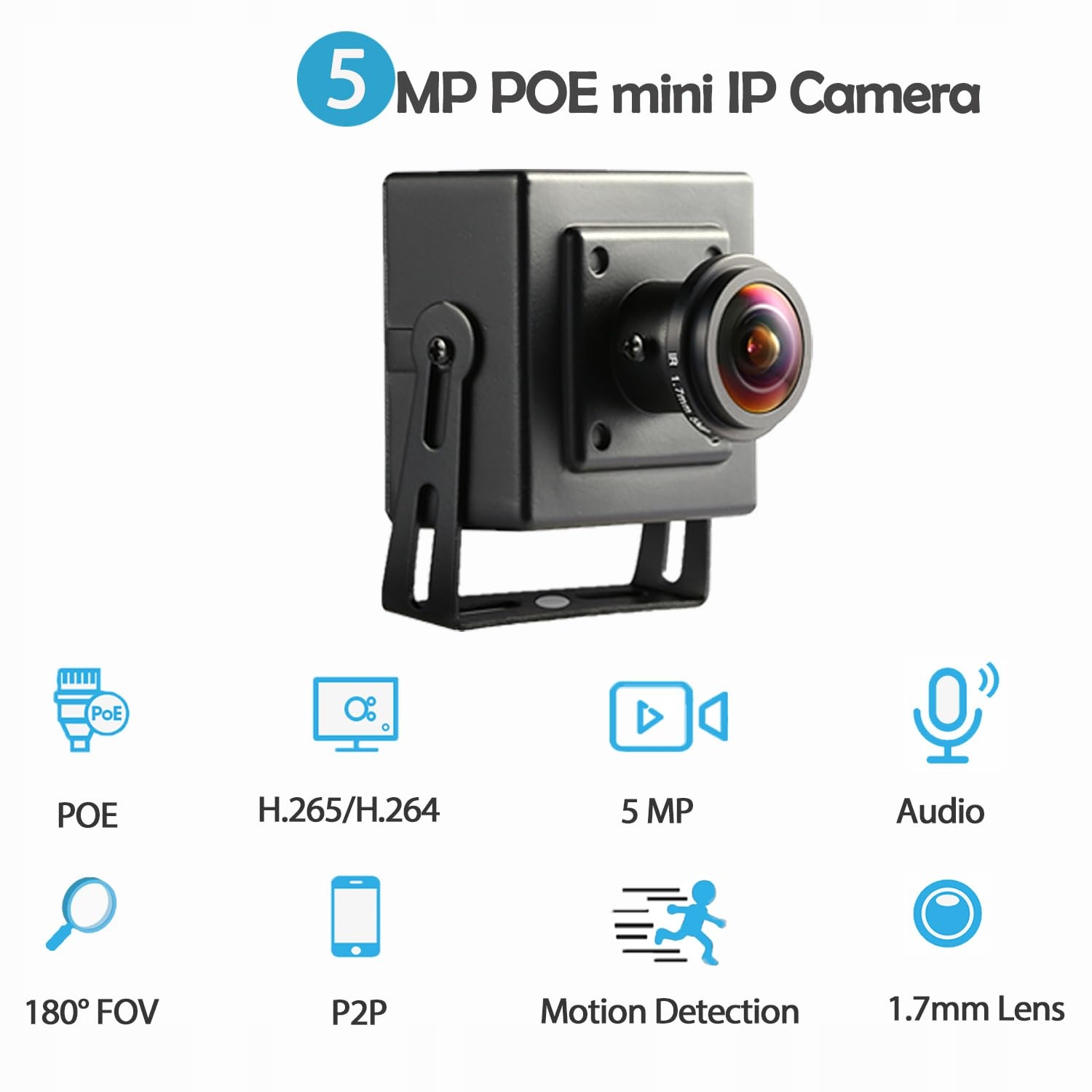 REVODATA HD 5MP Mini Fisheye POE IP Kamera Mikrofon, Audio Indoor Kamera Bezpieczeństwa 1,7mm Obiektyw Fisheye 180° Kąt Widzenia, P2P Zdalny Podgląd Kamera CCTV z Wykrywaniem Ruchu (I706-3-P-A-HS)