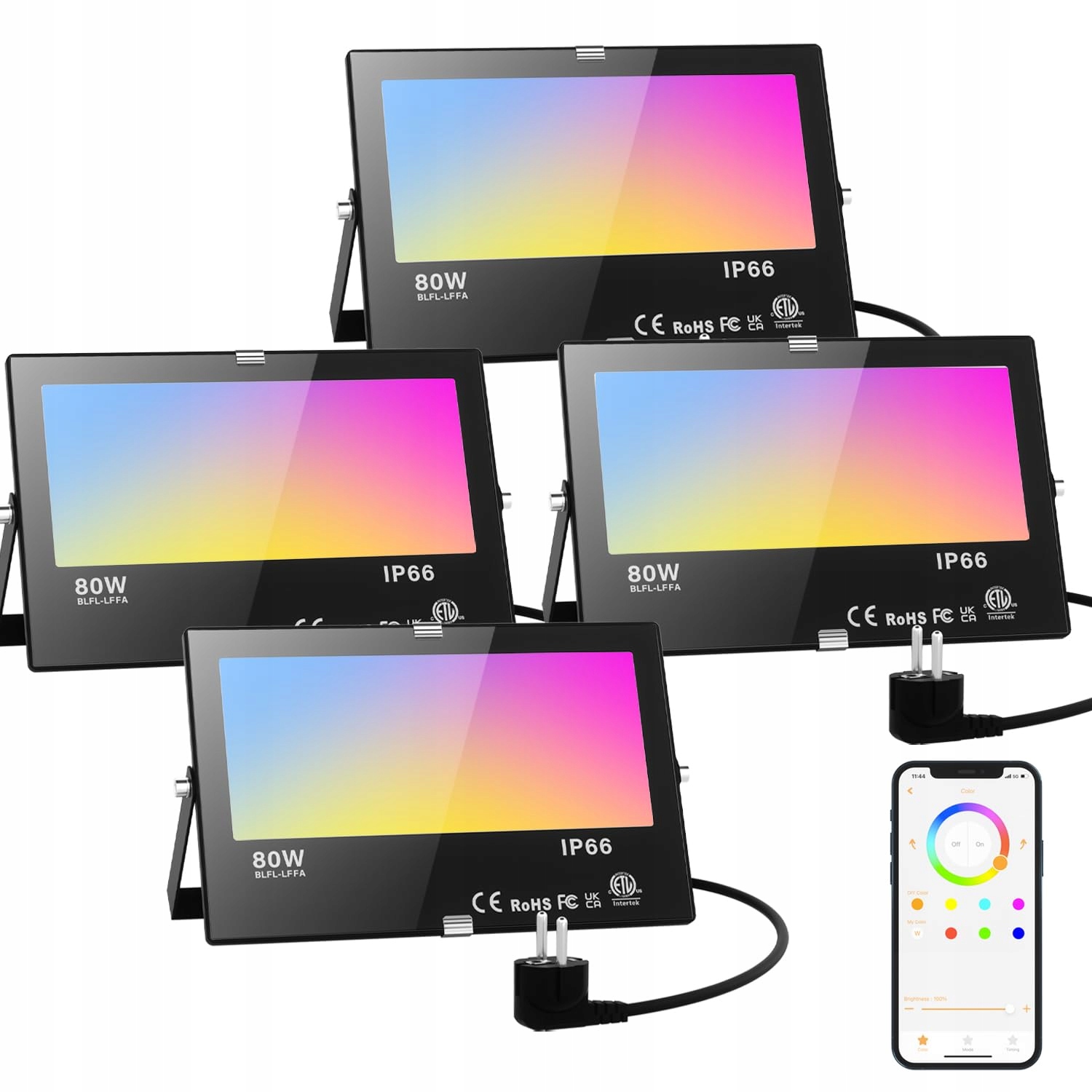 RGB LED Reflektor Zewnętrzny Zimna Biała 80W Naświetlacz Smart Kolorowy Z Bluetooth Sterowaniem Aplikacją IP66 Wodoodporny Reflektor Na Zewnątrz Milion Kolorów ściemnialny Oświetlenie Ogrodowe Na Zewnątrz Wewnątrz Impreza Ogród 4 szt.