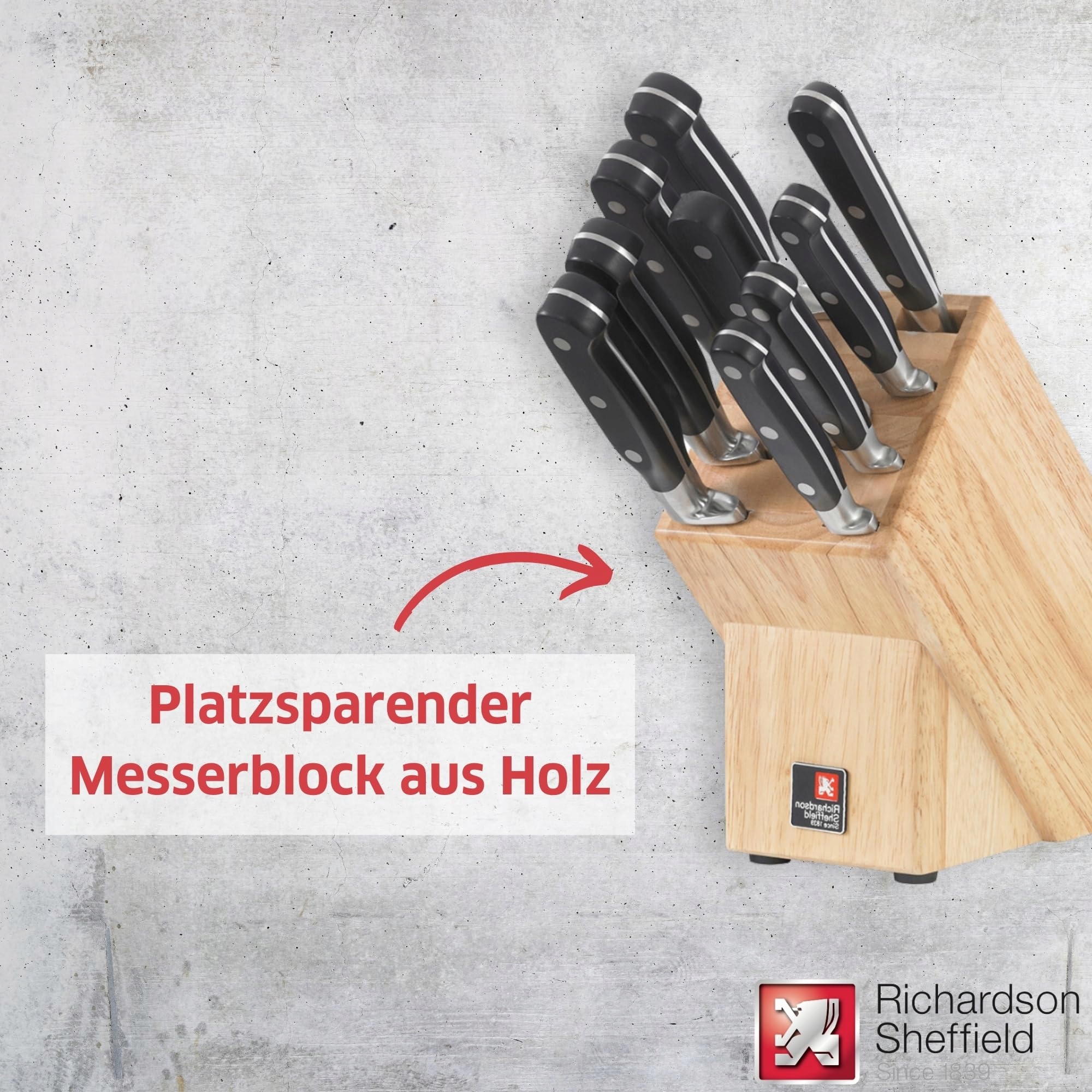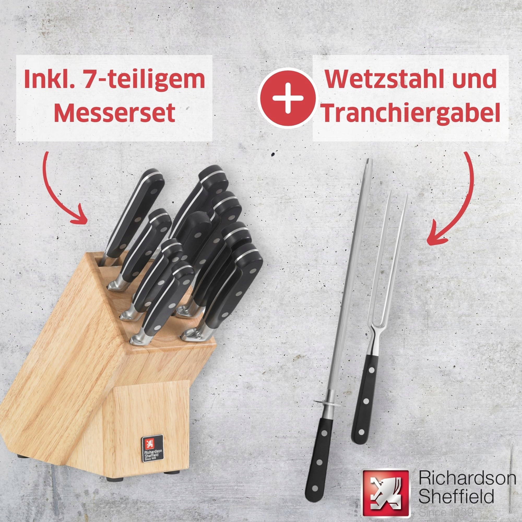 Blok noży Richardson Sheffield V SABATIER z zestawem noży, 10-częściowy, ostre noże, stal chromowo-molibdenowo-wanadowa, solidny blok drewniany, wysokiej jakości i piękny design