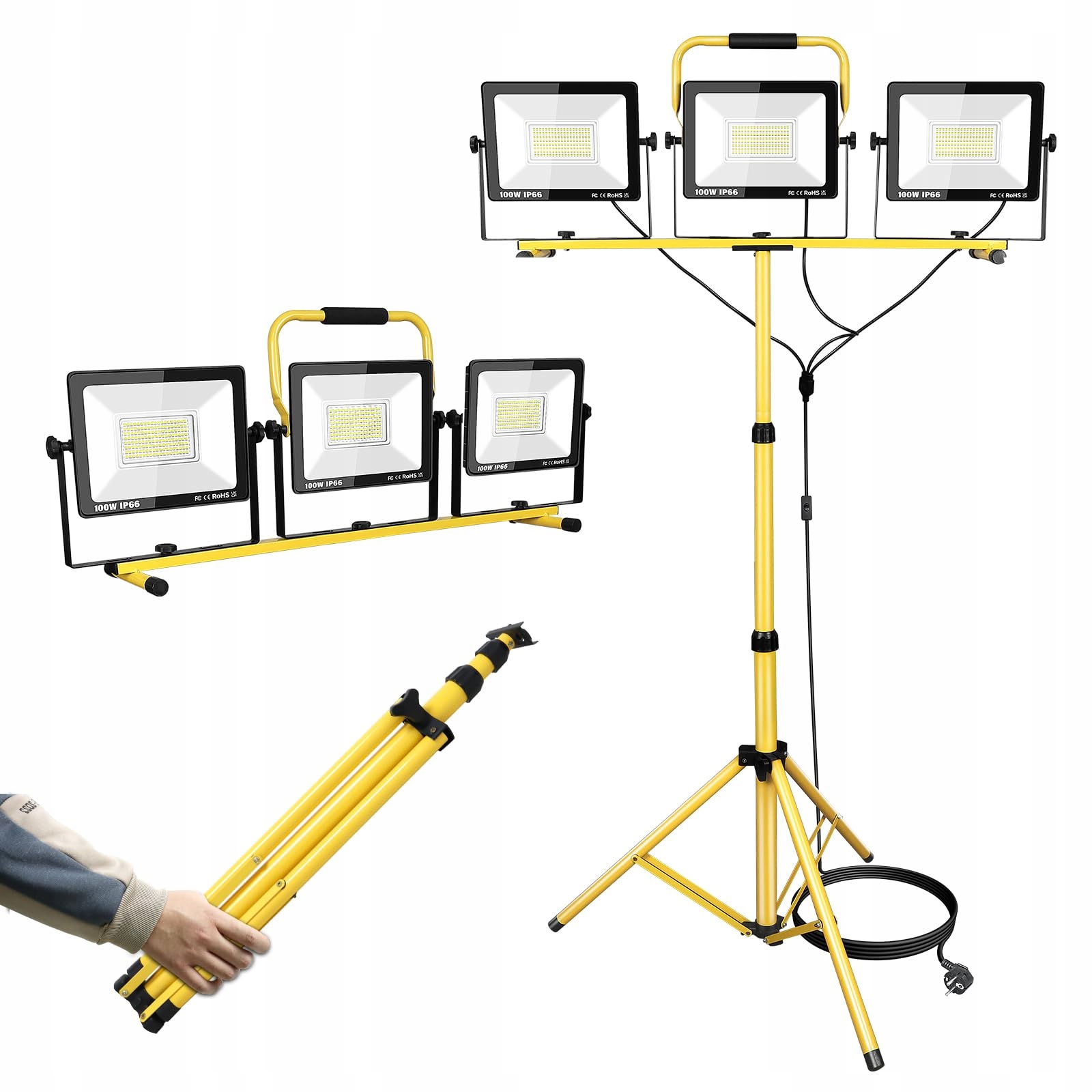 RIGIDON 300W LED Reflektor roboczy z trójnogiem, 30000lm reflektor LED, teleskopowy statyw LED dla warsztatu, budowy, kempingu, garażu, ogrodu, wodoodporny