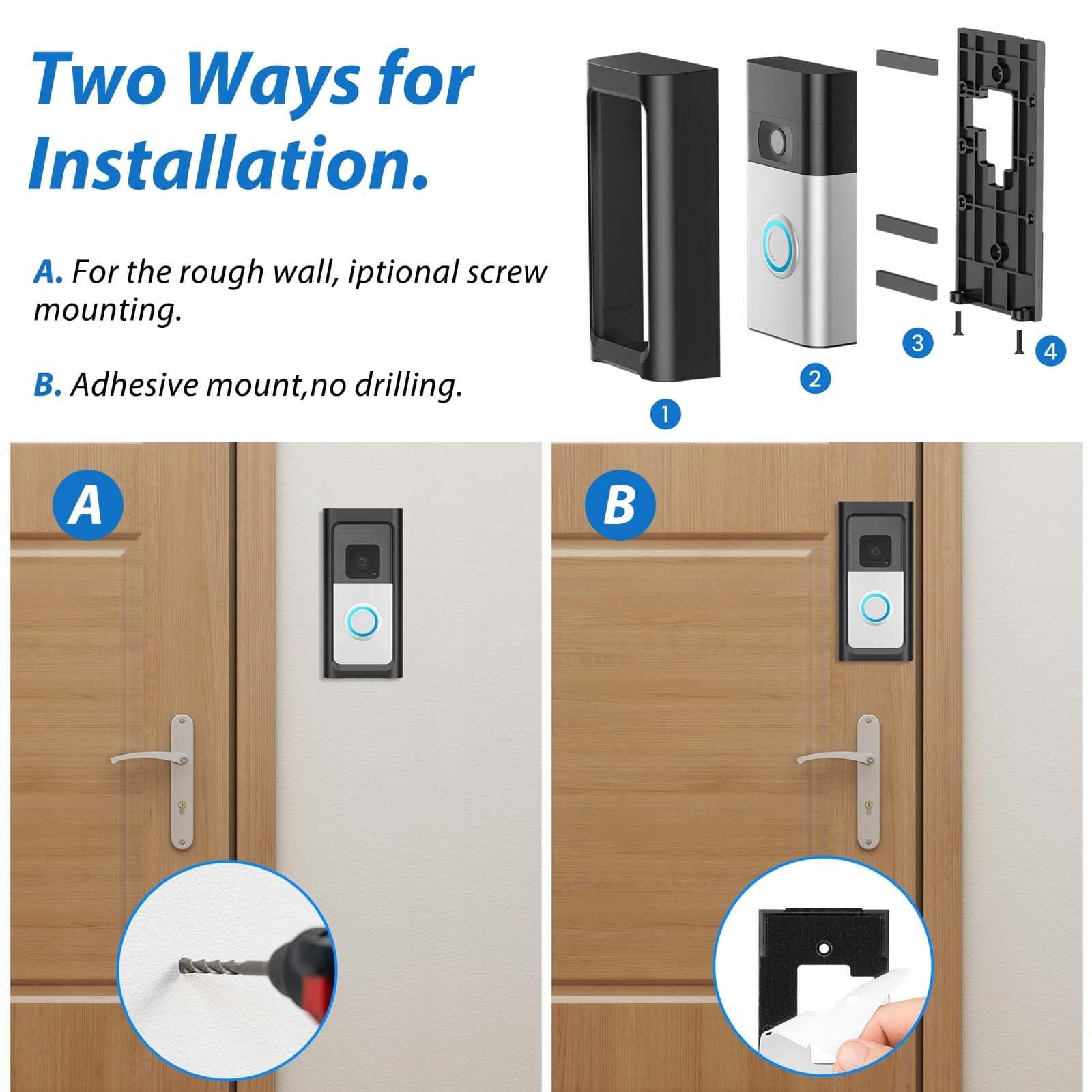 Samoprzylepny uchwyt do wideodomofonu, uchwyt do dzwonka bez wiercenia, uchwyt do dzwonka kompatybilny z Ring dla dzwonka na baterie (2024) Dzwonek Plus/Pro, Dzwonek 4/3/3Plus/Wersja