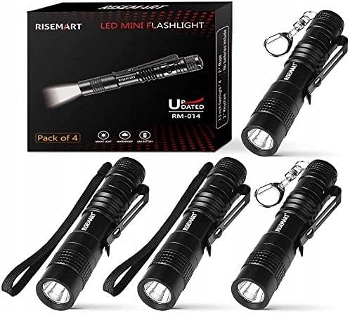 RISEMART Superjasna Mini Latarka - EDC Brelok LED Wodoodporny na baterię AAA - Ultra jasna (4 sztuki, 9cm)
