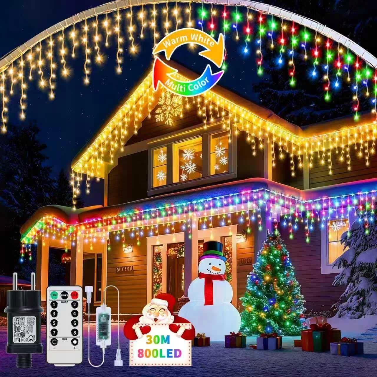 【3 w 1 dekoracja świąteczna na zewnątrz】 Zewnętrzne oświetlenie świąteczne 3 w 1 z trybami przełączania, ciepła biała i kolorowa świąteczna iluminacja na zewnątrz można przełączać dowolnie, kup jeden i masz wszystkie 3 kolory naraz! Najlepszy wybór, aby zaoszczędzić pieniądze! Długi czas świecenia ciepłym światłem, ciepła atmosfera, długi czas świecenia kolorowym, wspaniałym światłem, ciepły kolor, skaczące fazy świetlne. Najlepszy wybór, aby zaoszczędzić pieniądze!